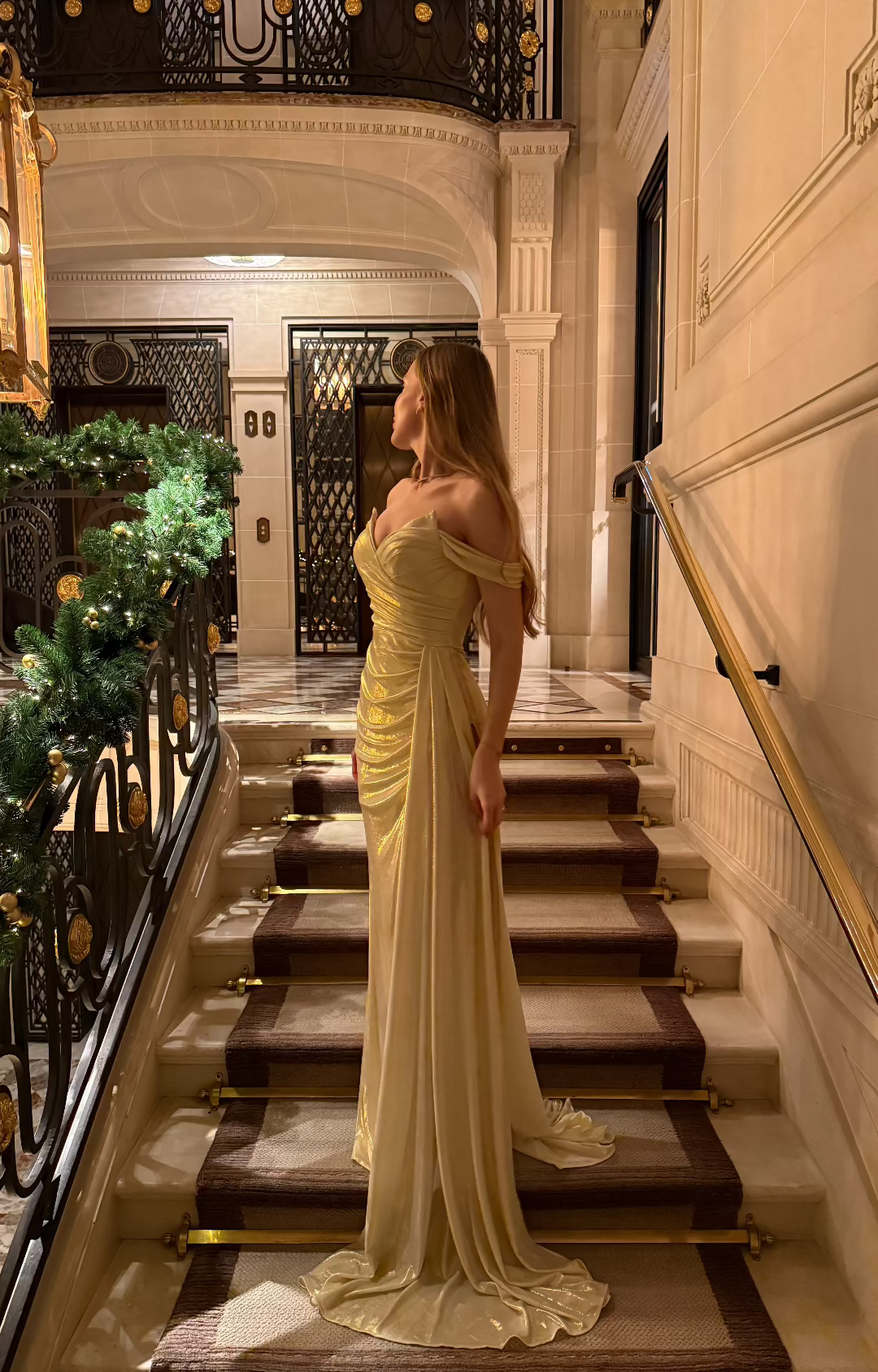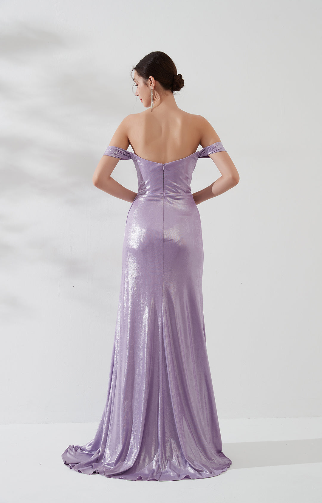 Off-Shoulder Sleeves Front High Split Evening Dress