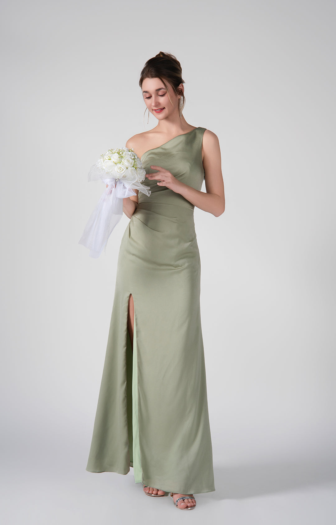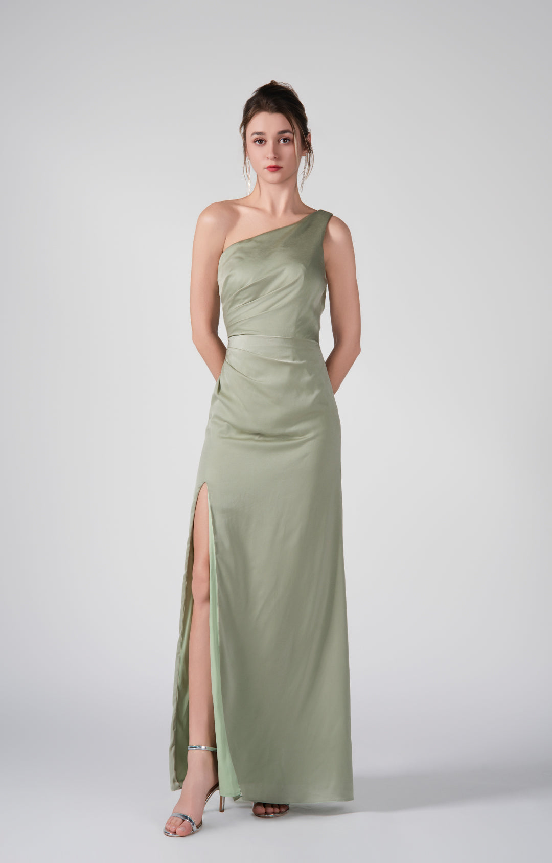 This matte acetate satin dress is perfect for high-end events such as gala dinners, evening receptions, formal parties, and weddings. Its elegant design and flattering silhouette make it an ideal choice for anyone looking to make a statement with grace and sophistication.