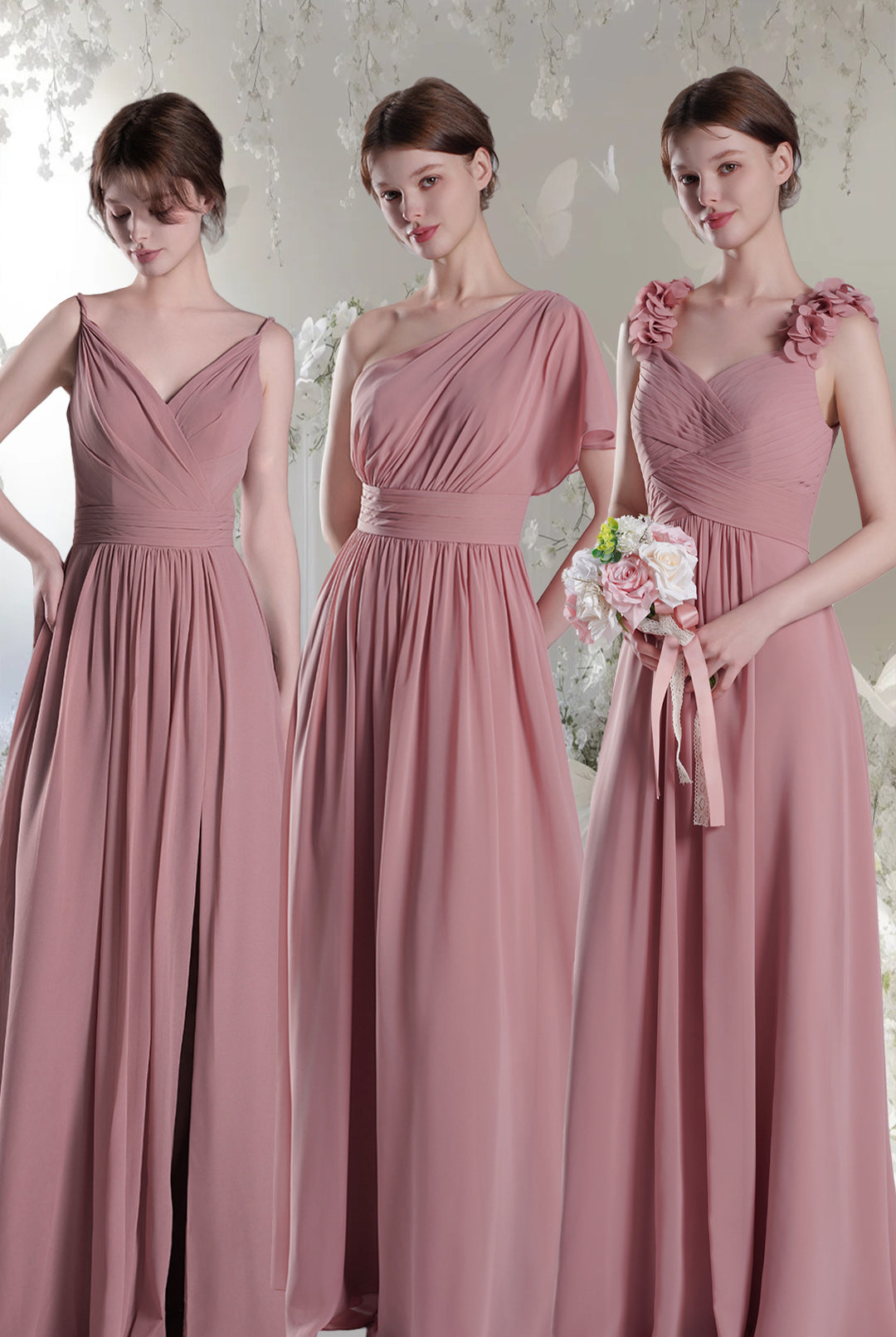 9 avaliaçõesAdjustable Straps Ruffled Chiffon Long Dresses