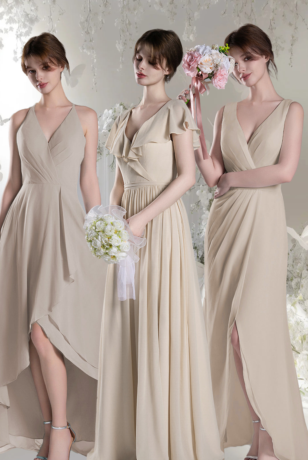 Open Back V-Neck Split Chiffon Maxi Dresses