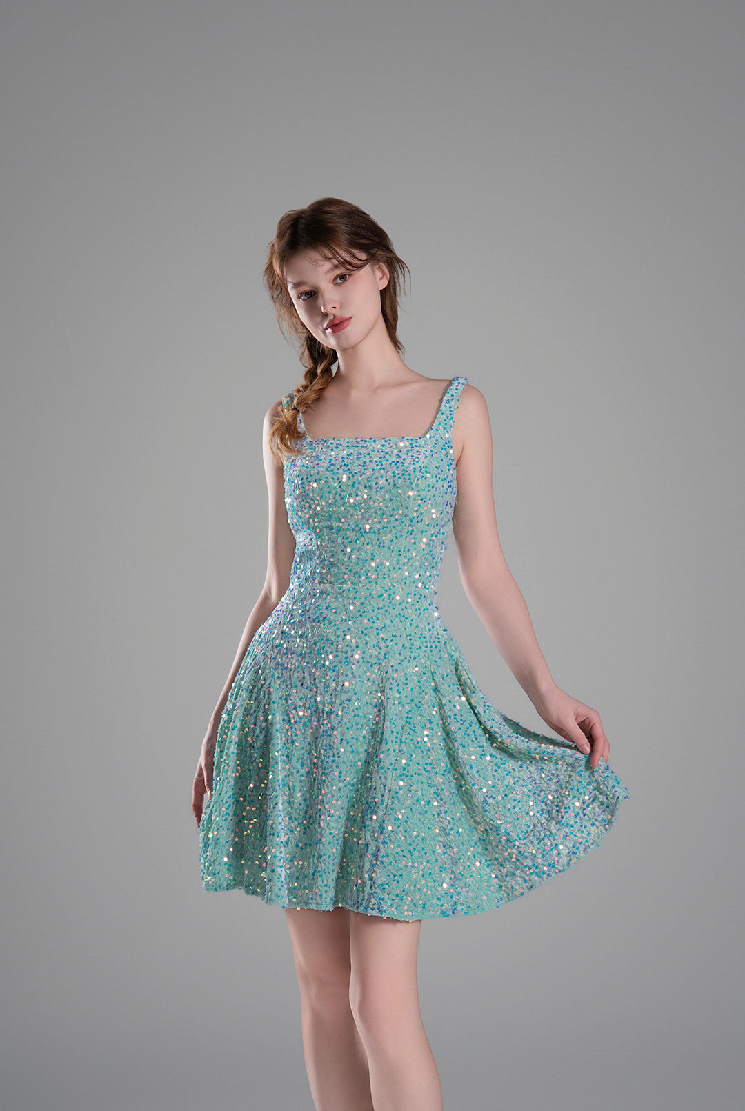 10 avaliaçõesSquare-Neck Wide Straps Sequins Pleated Dresses