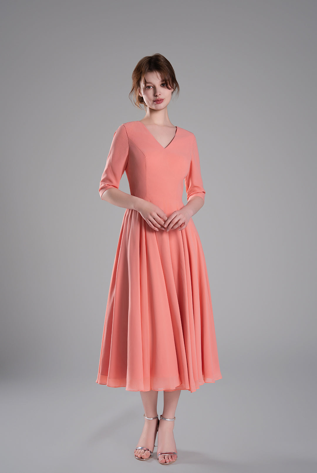 Elegant Chiffon Midi Dress with 3/4 Sleeves