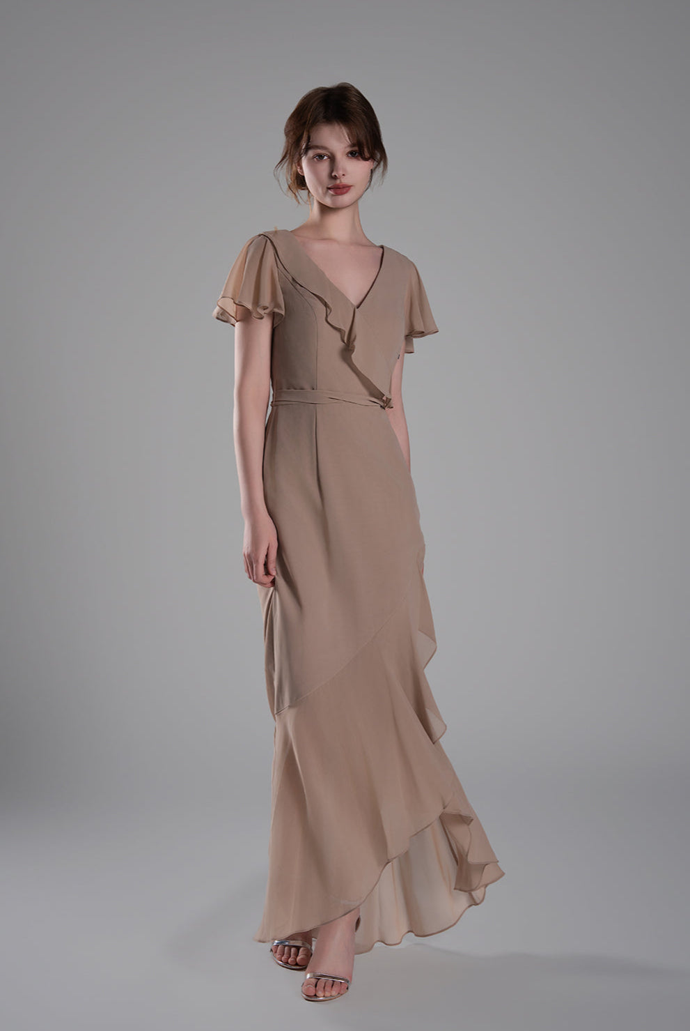 4 avaliaçõesV-Neck Flutter Sleeves Asymmetrical Hemline Dresses