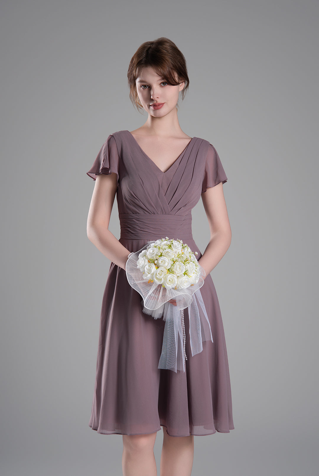 4 avaliaçõesFlutter Sleeves Pleated V-Cut Back Mini Dresses