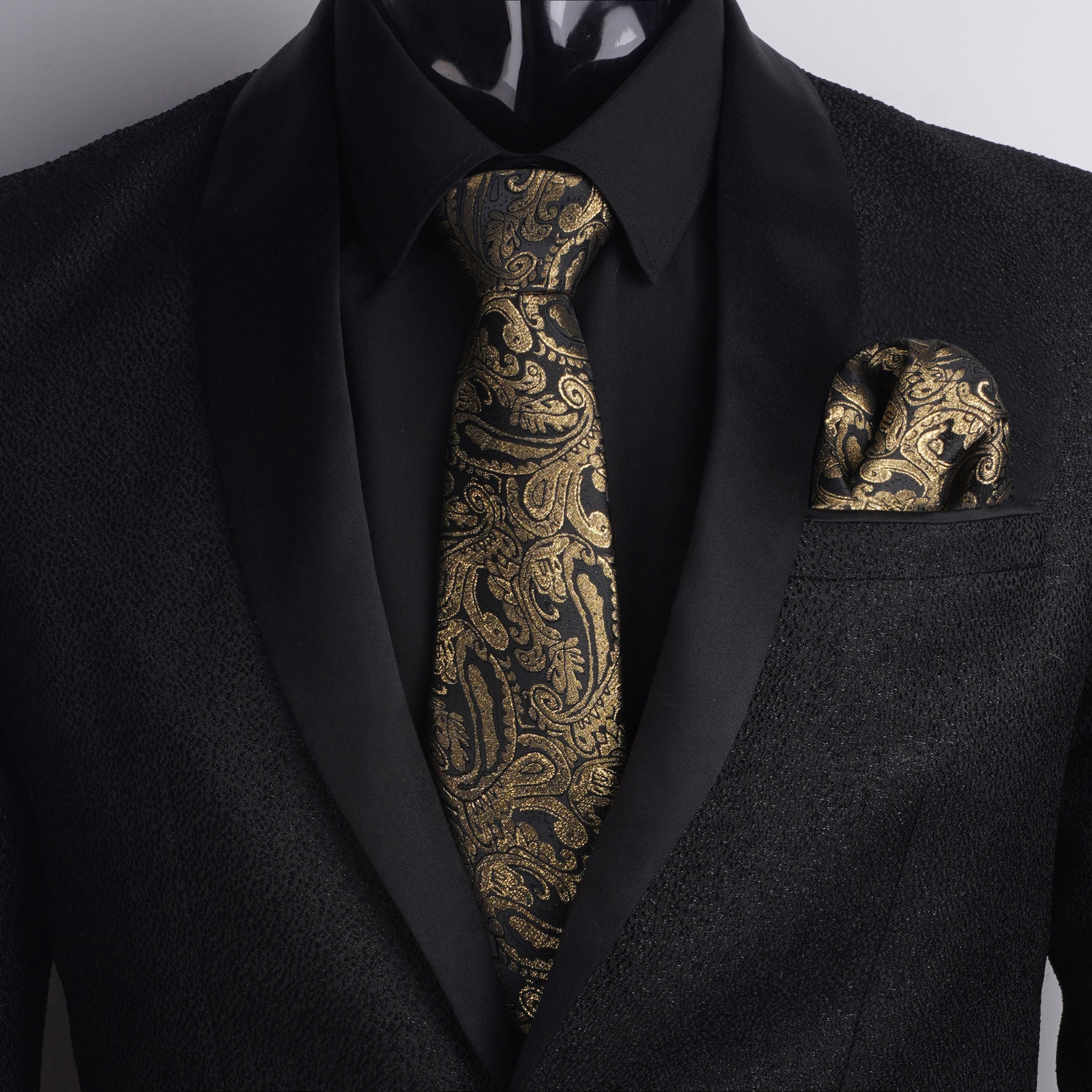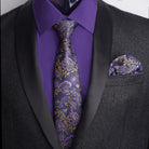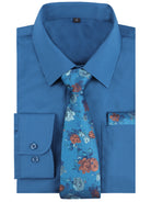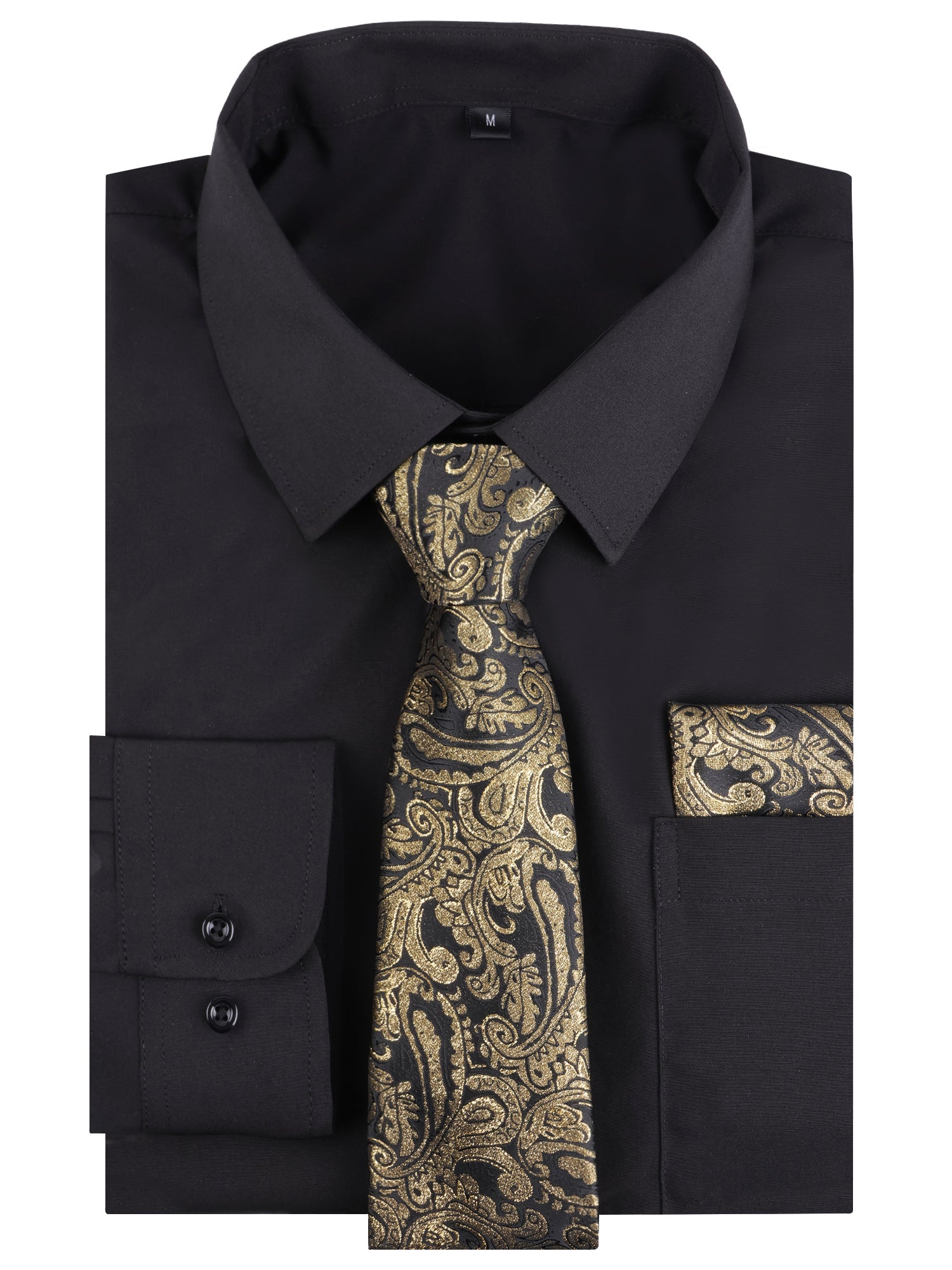 3pcs Dark Color Mens Dress Shirt with Tie Pocket Square Set