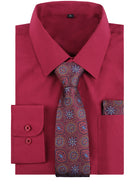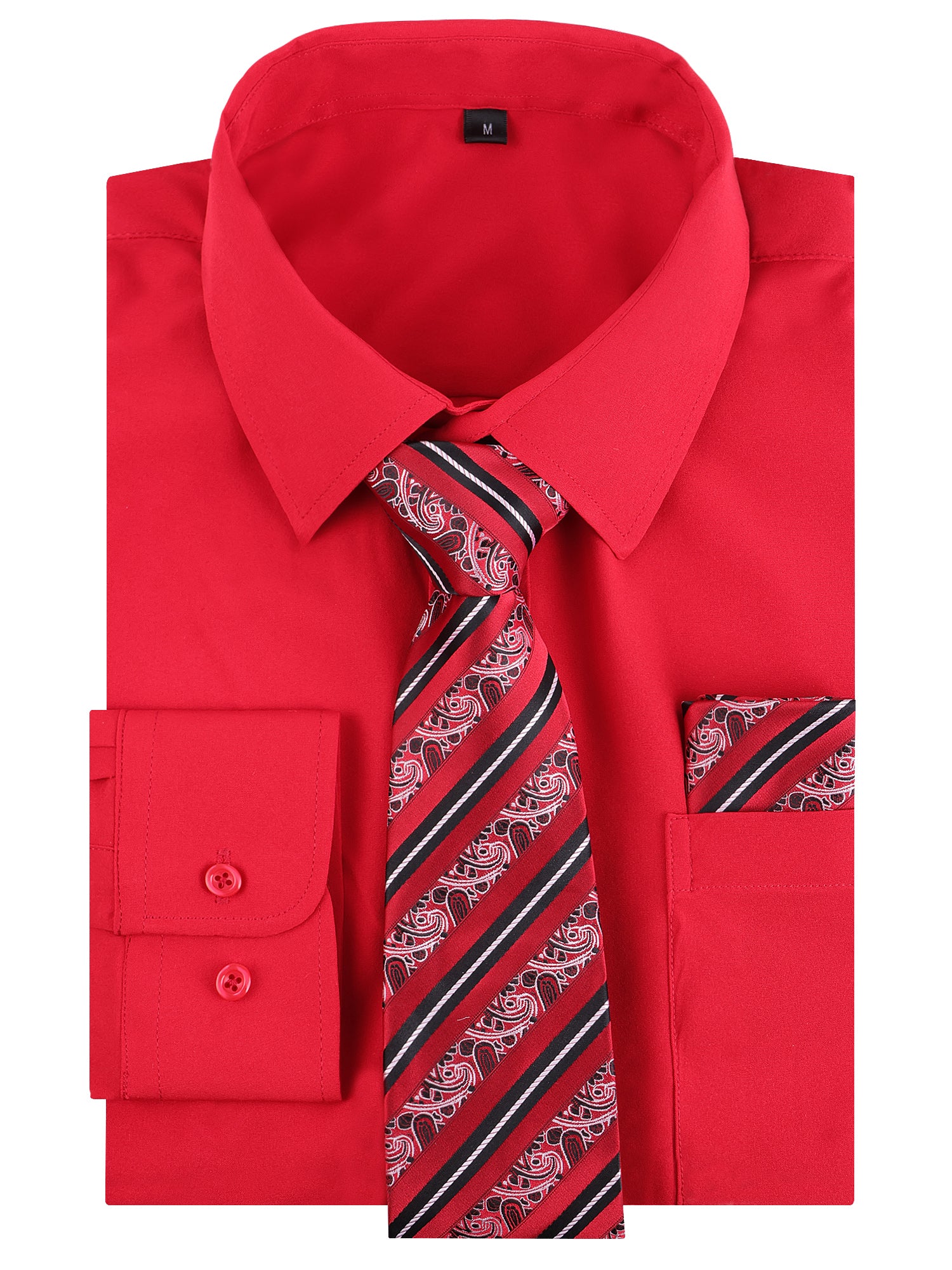 3pcs Vibrant Color Mens Dress Shirt with Tie Pocket Square Set