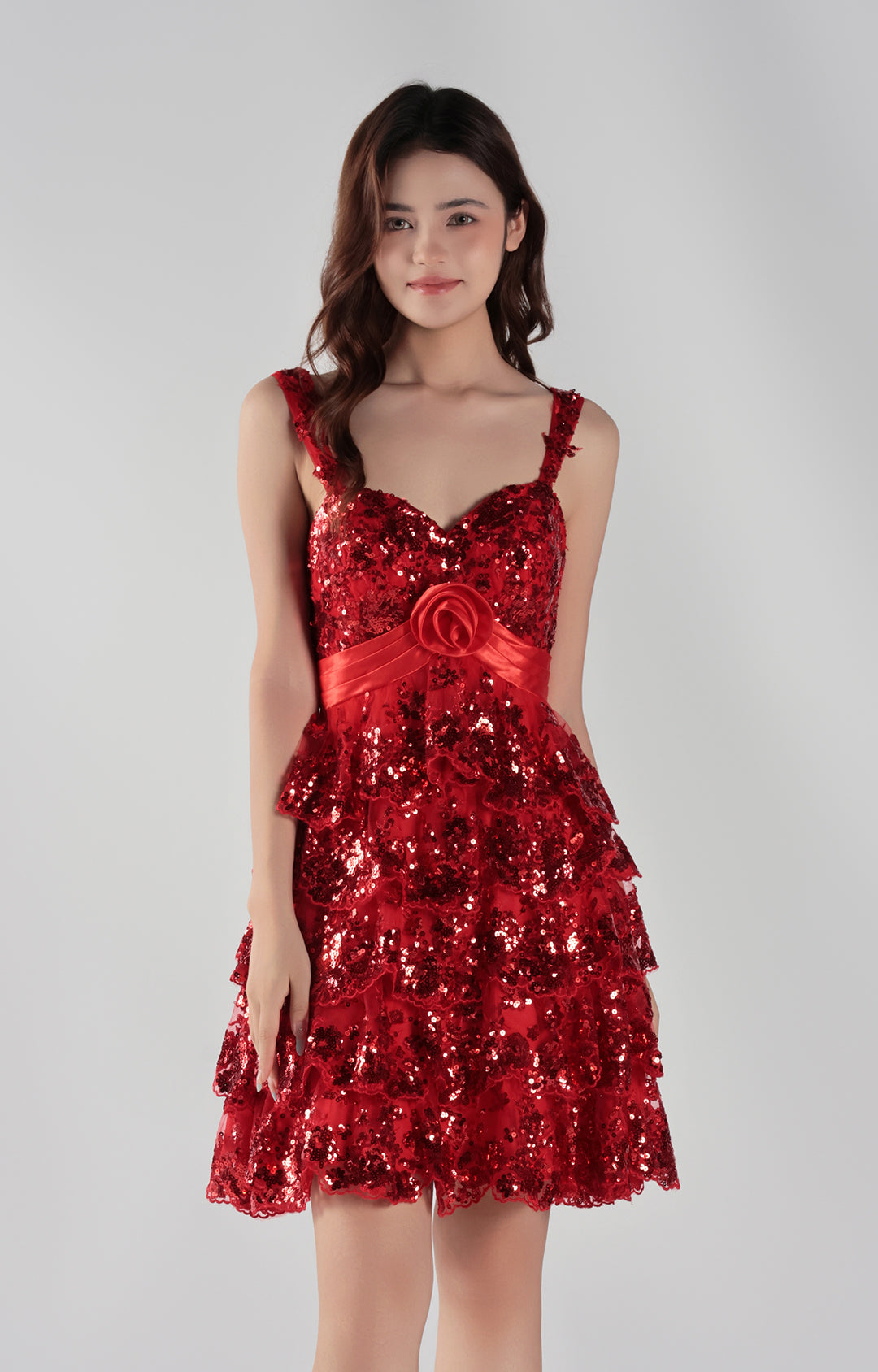 Strapless Fishbone Sequins Corset Bodic Mini Dress