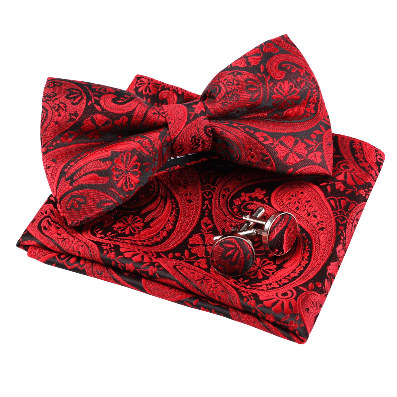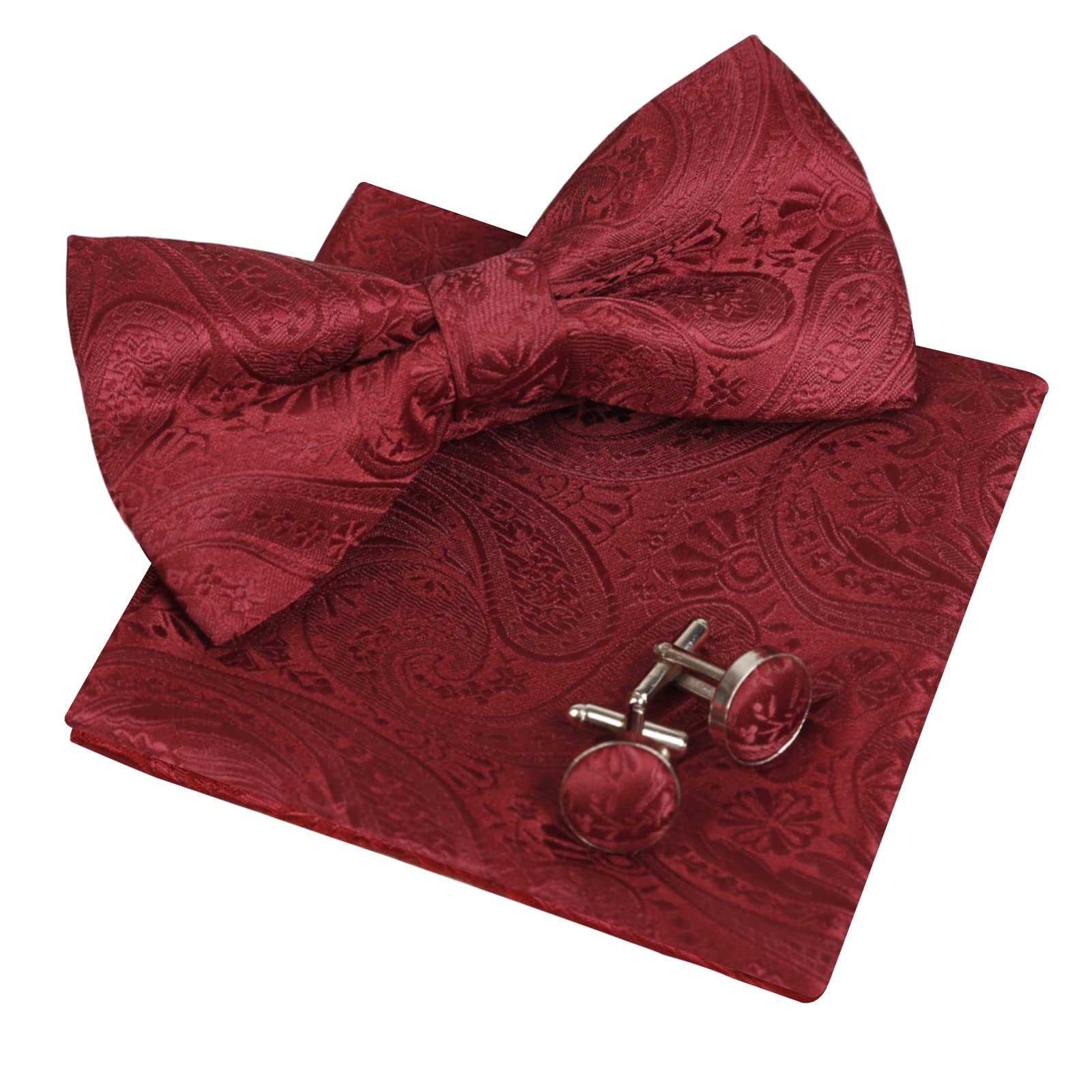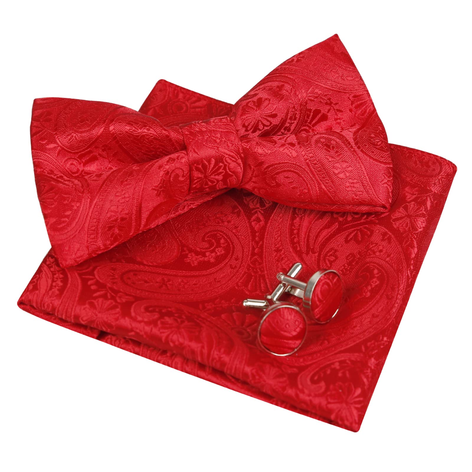 Men's Classic Paisley Bow Tie, Hanky and Cufflinks Set-028