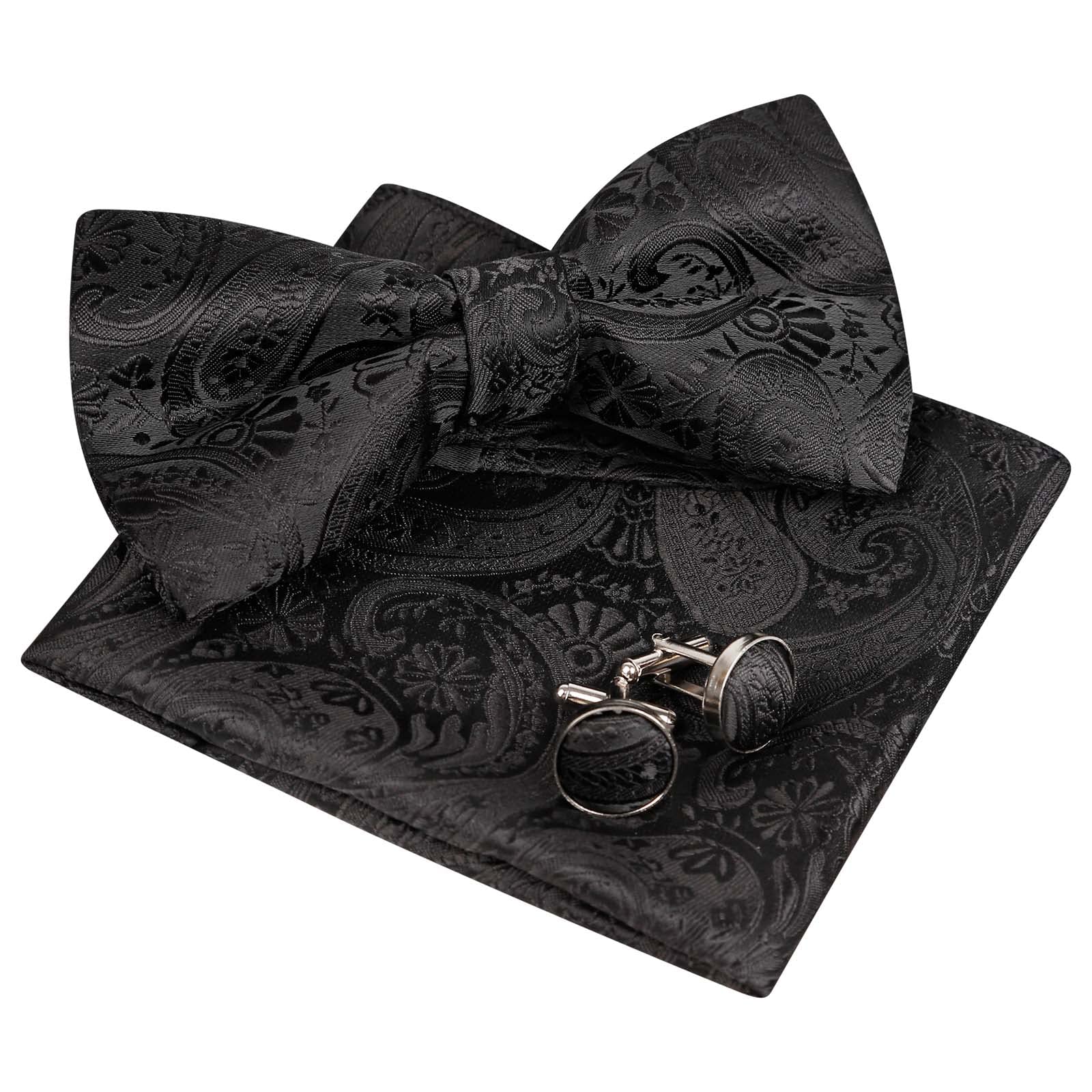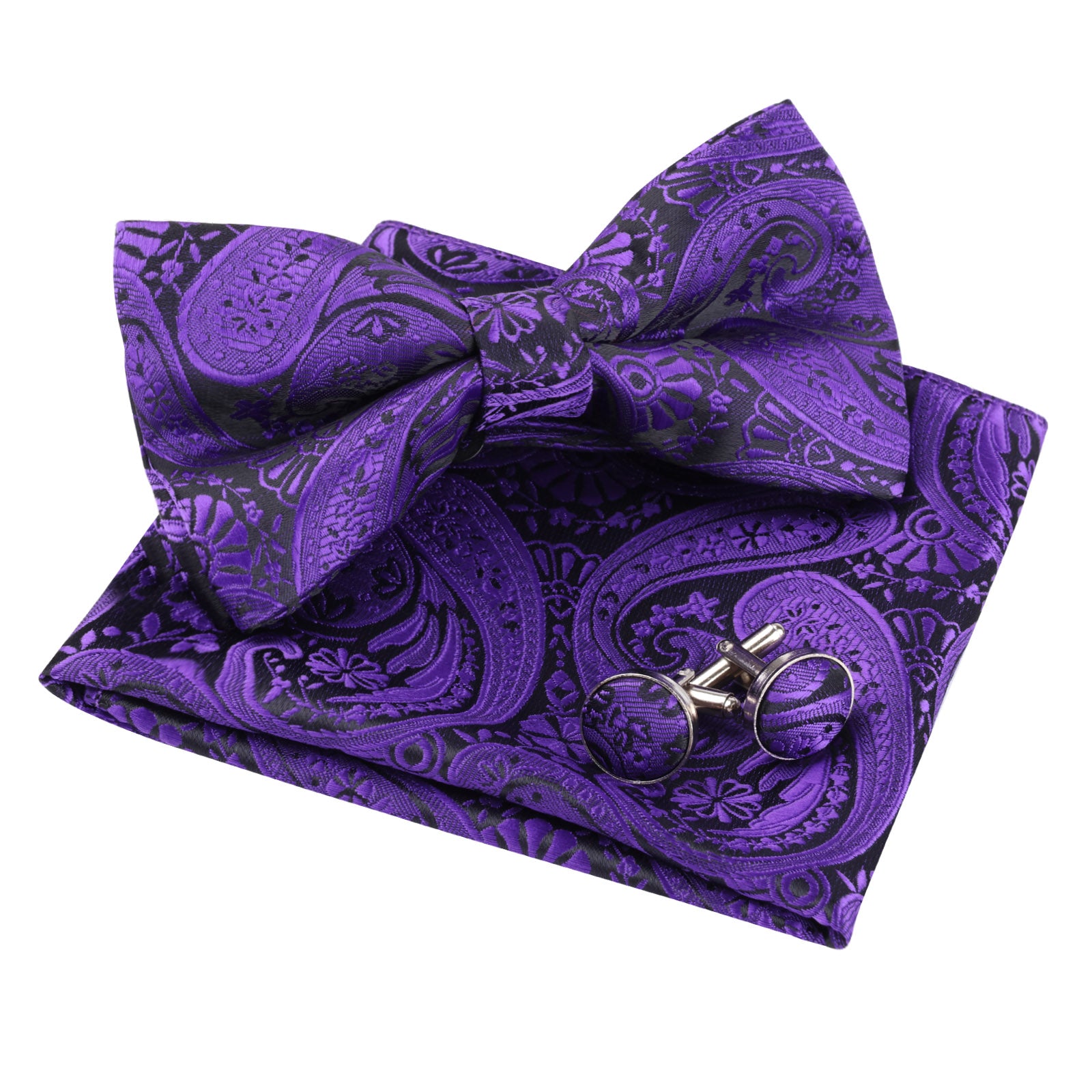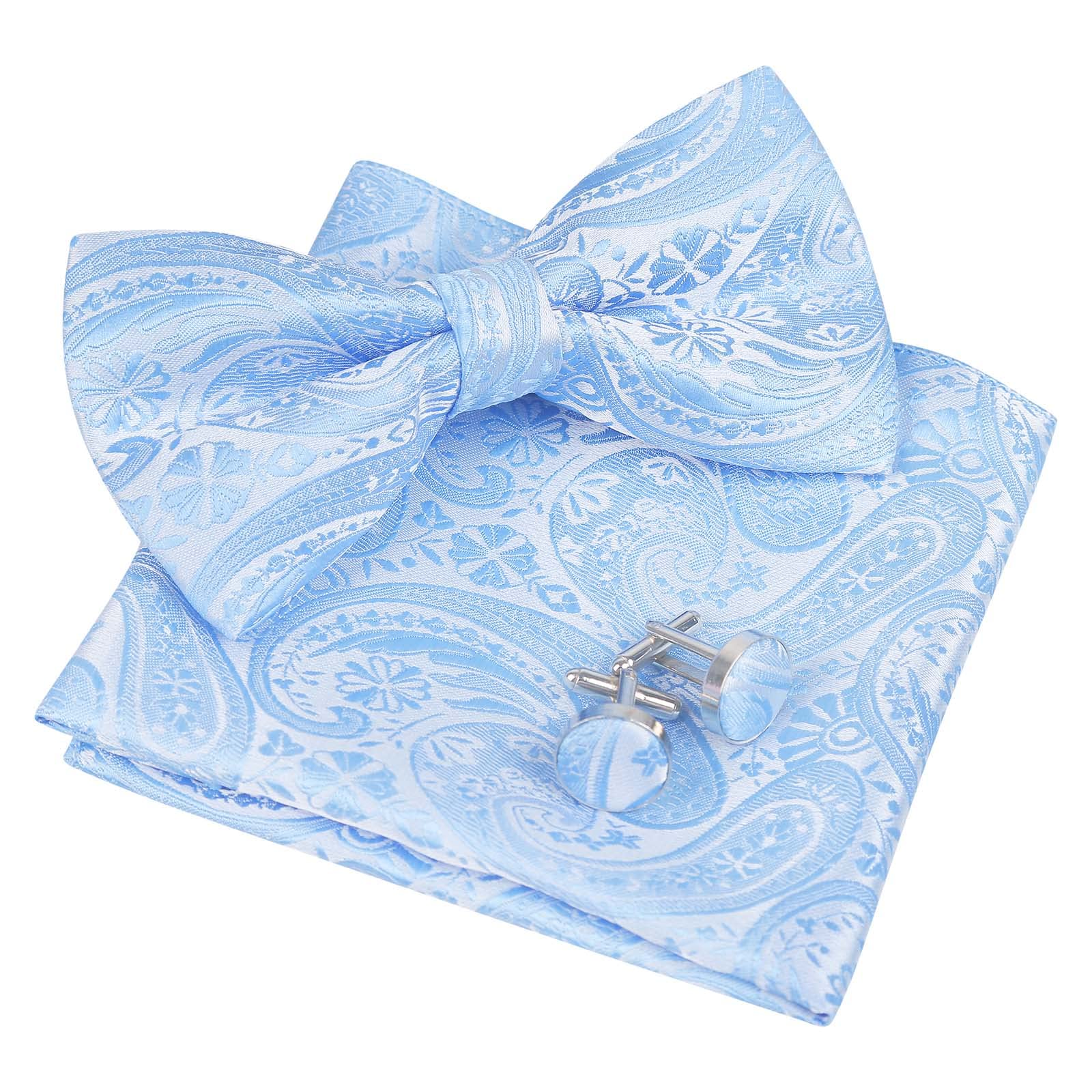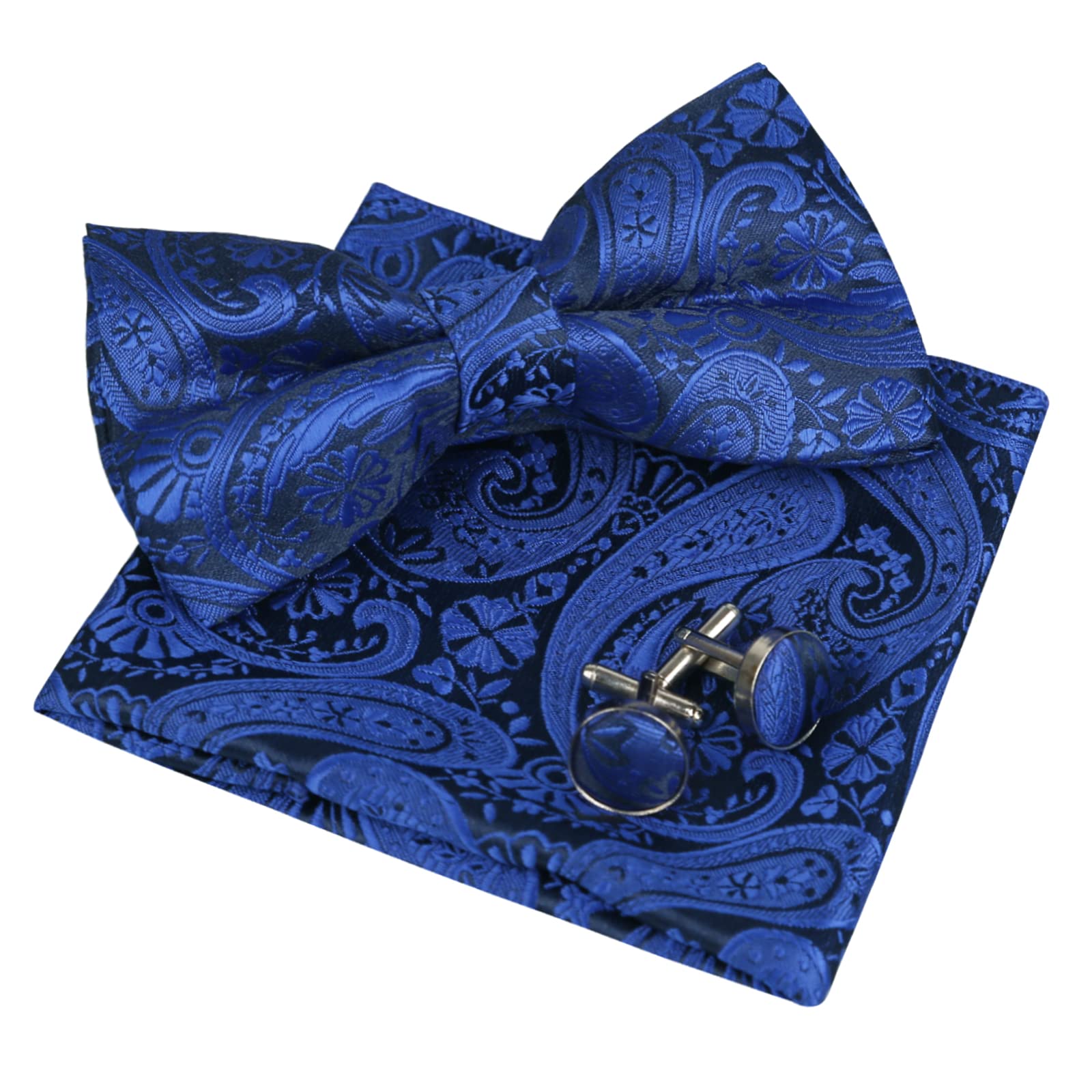 Men's Classic Paisley Bow Tie, Hanky and Cufflinks Set-028
