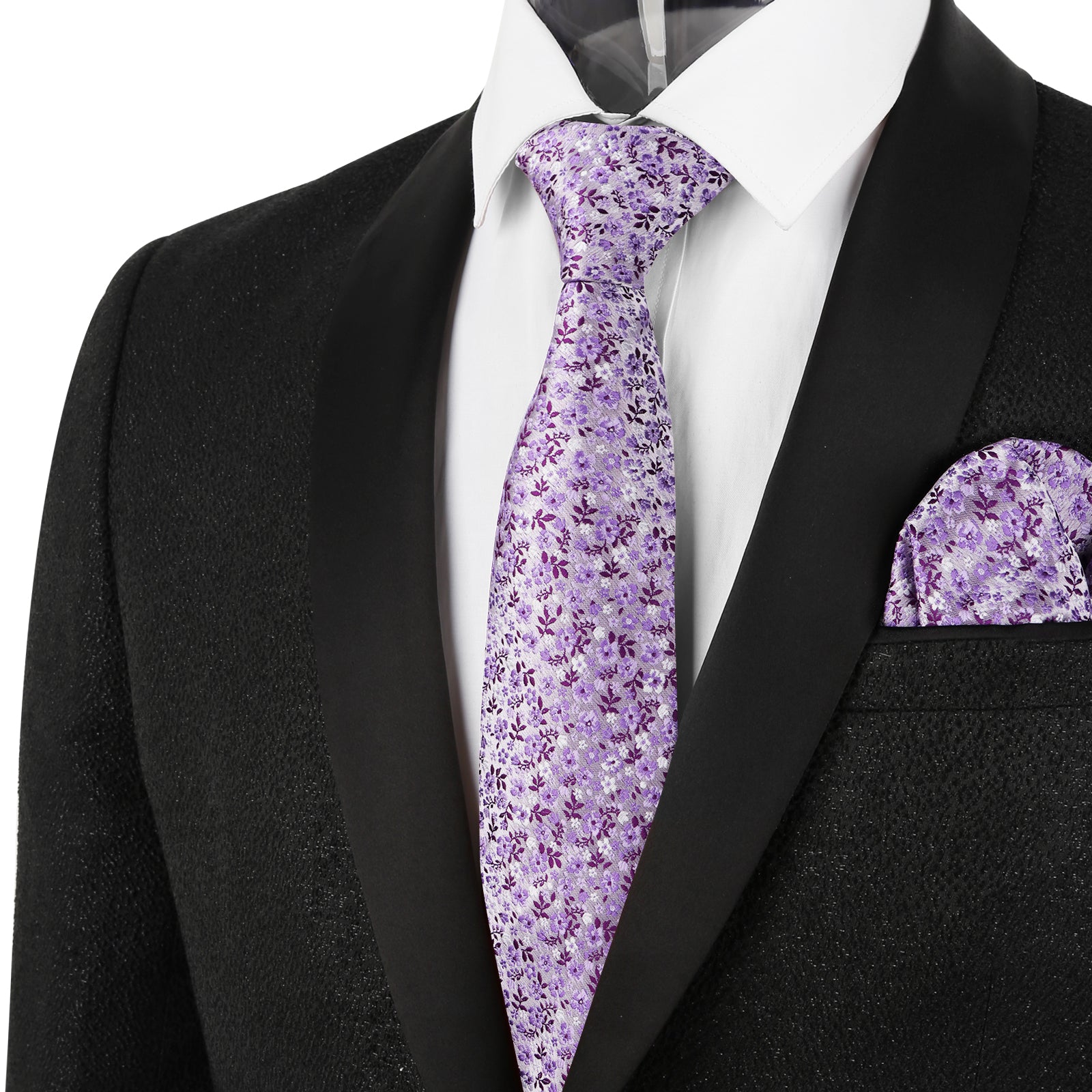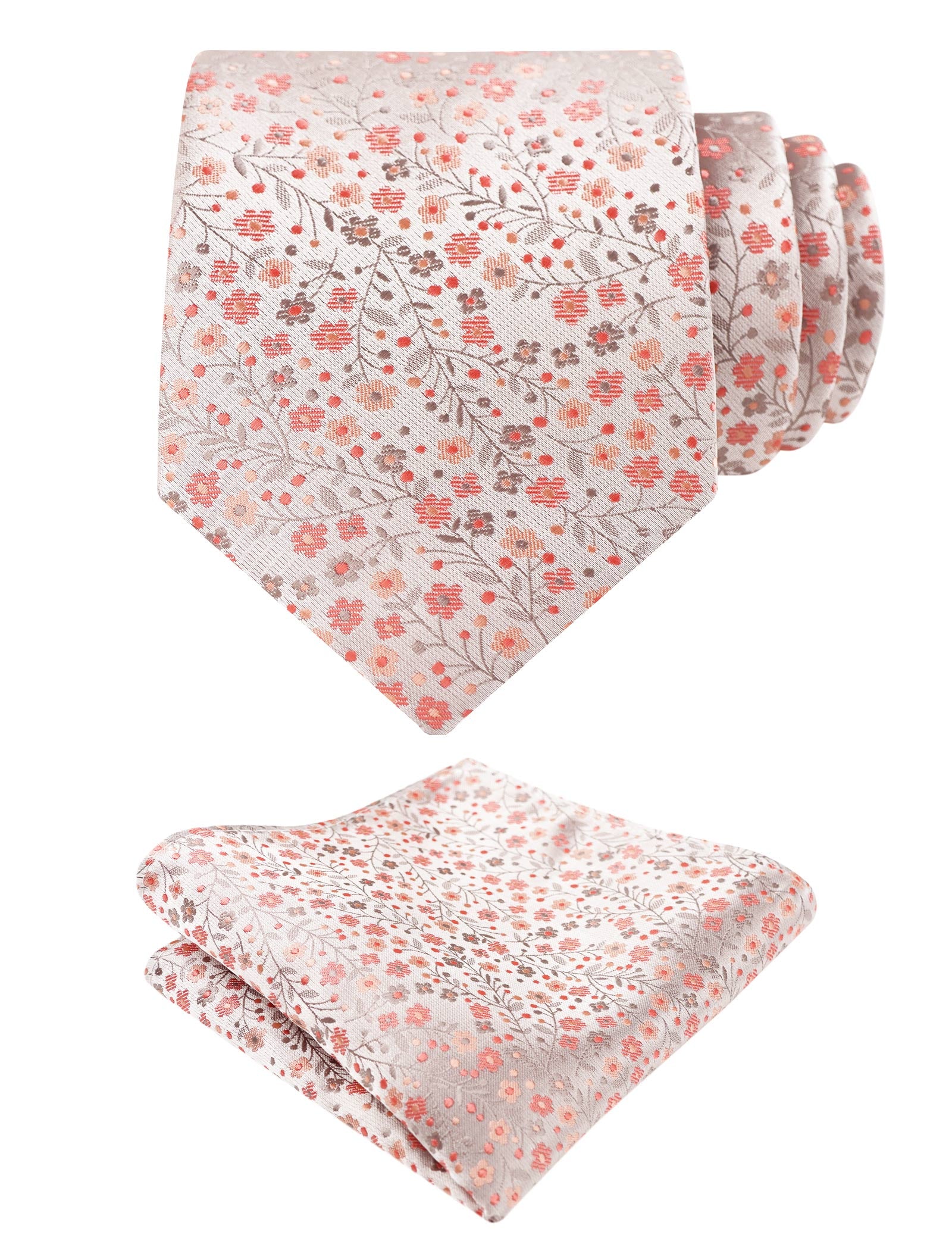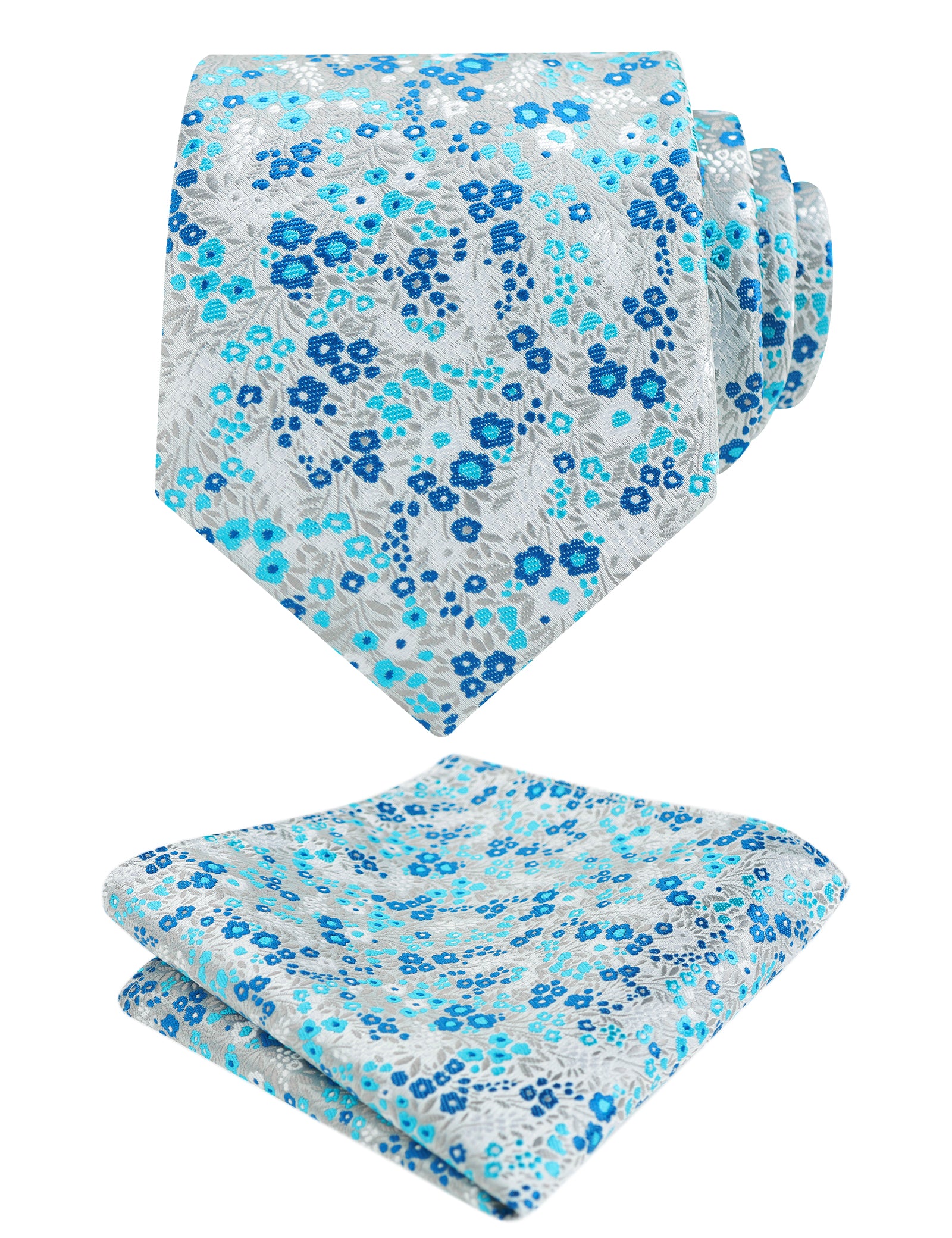 Mens 3.15" Exquisite Floral Tie with Small Flower Printed Pocket Square-142