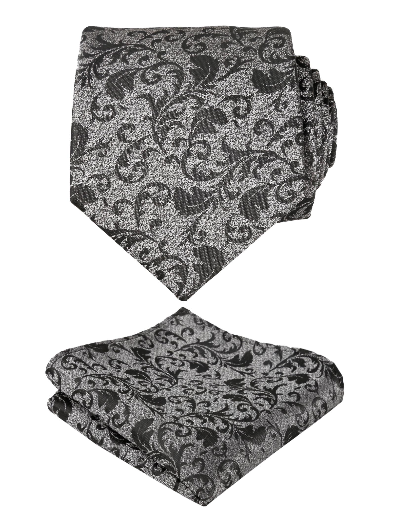 Men's Leaf Pattern Necktie with Plant Printed Pocket Square Set, 150