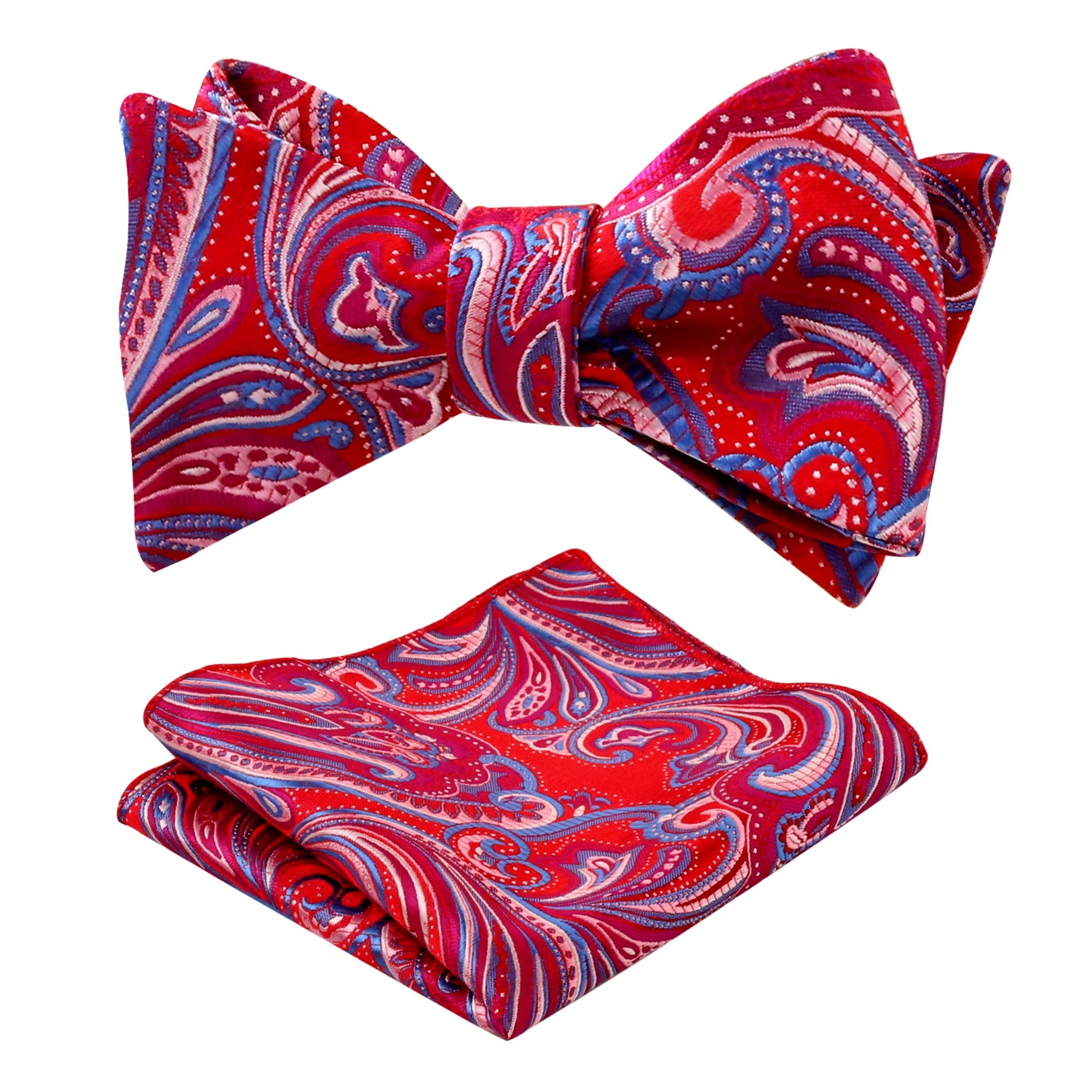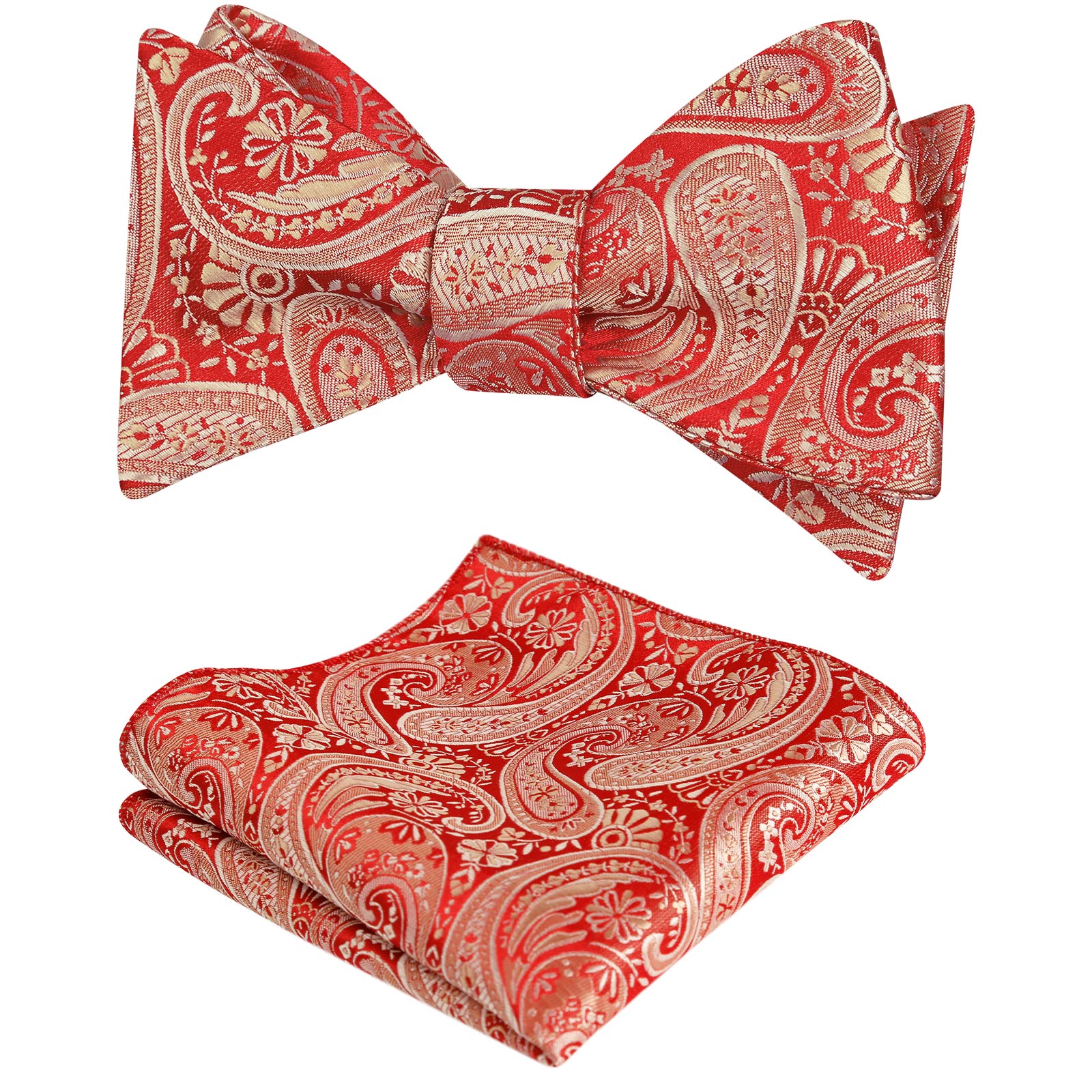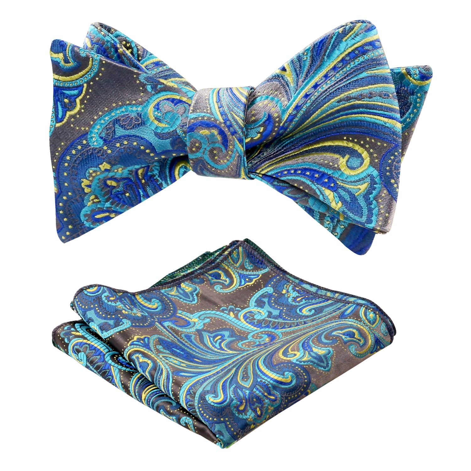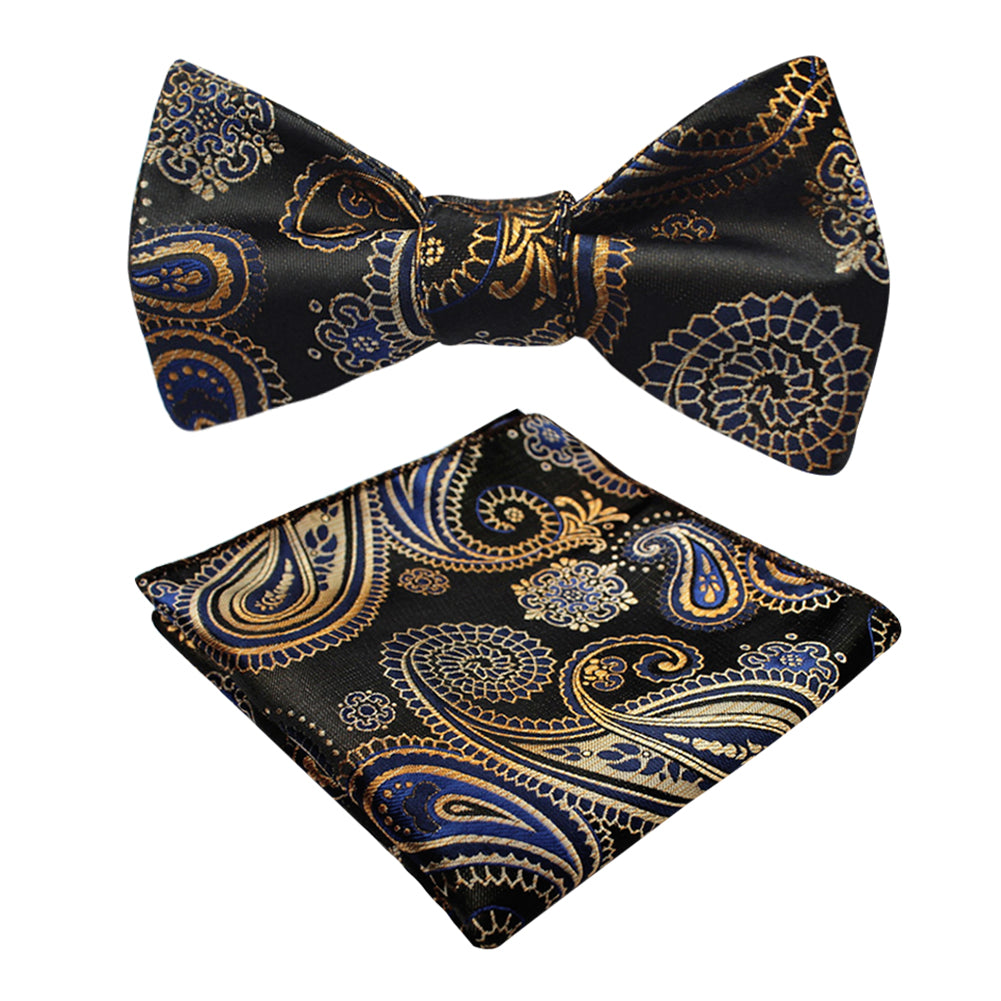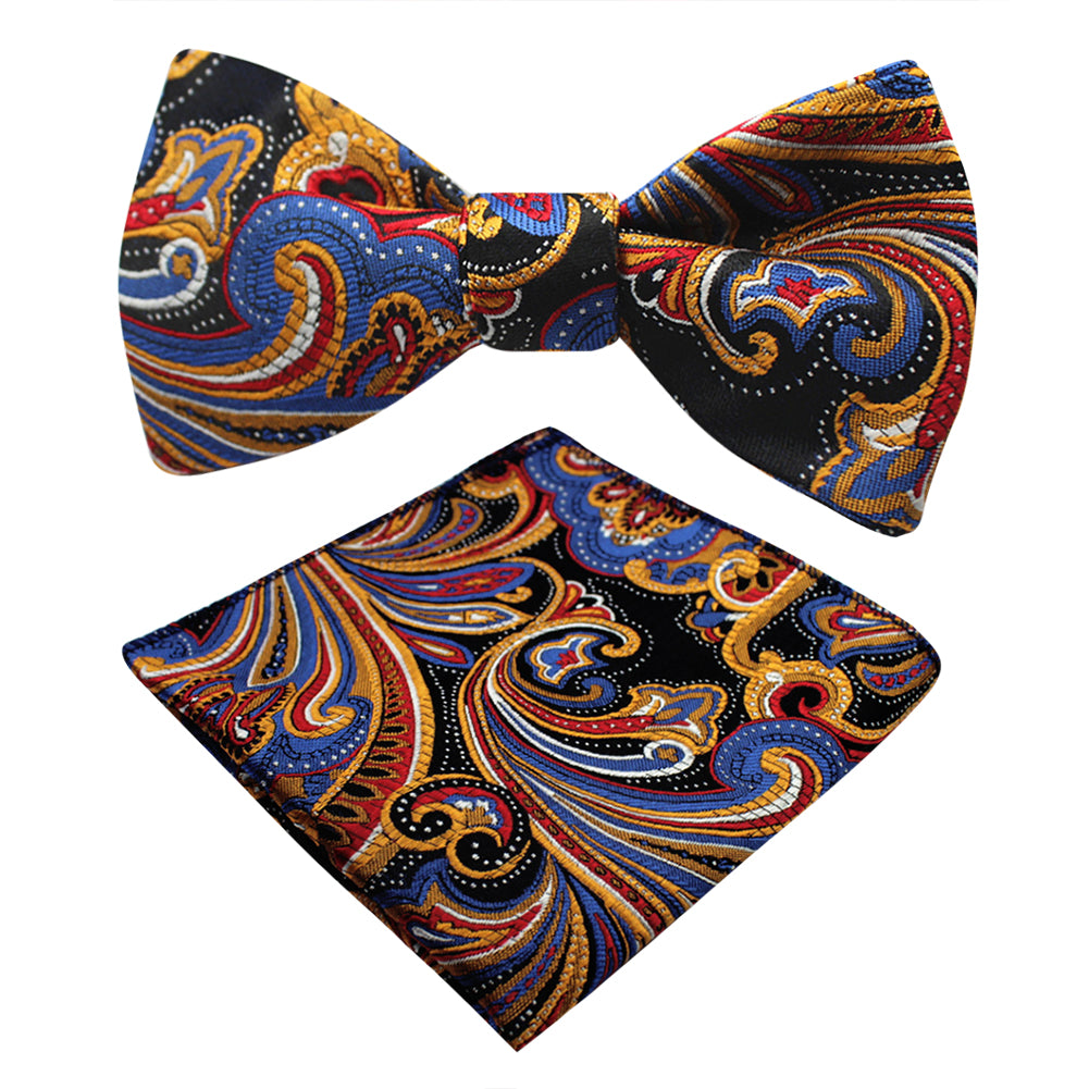 Men's Self-tied Paisley Bow Tie and Pocket Square Set, 167