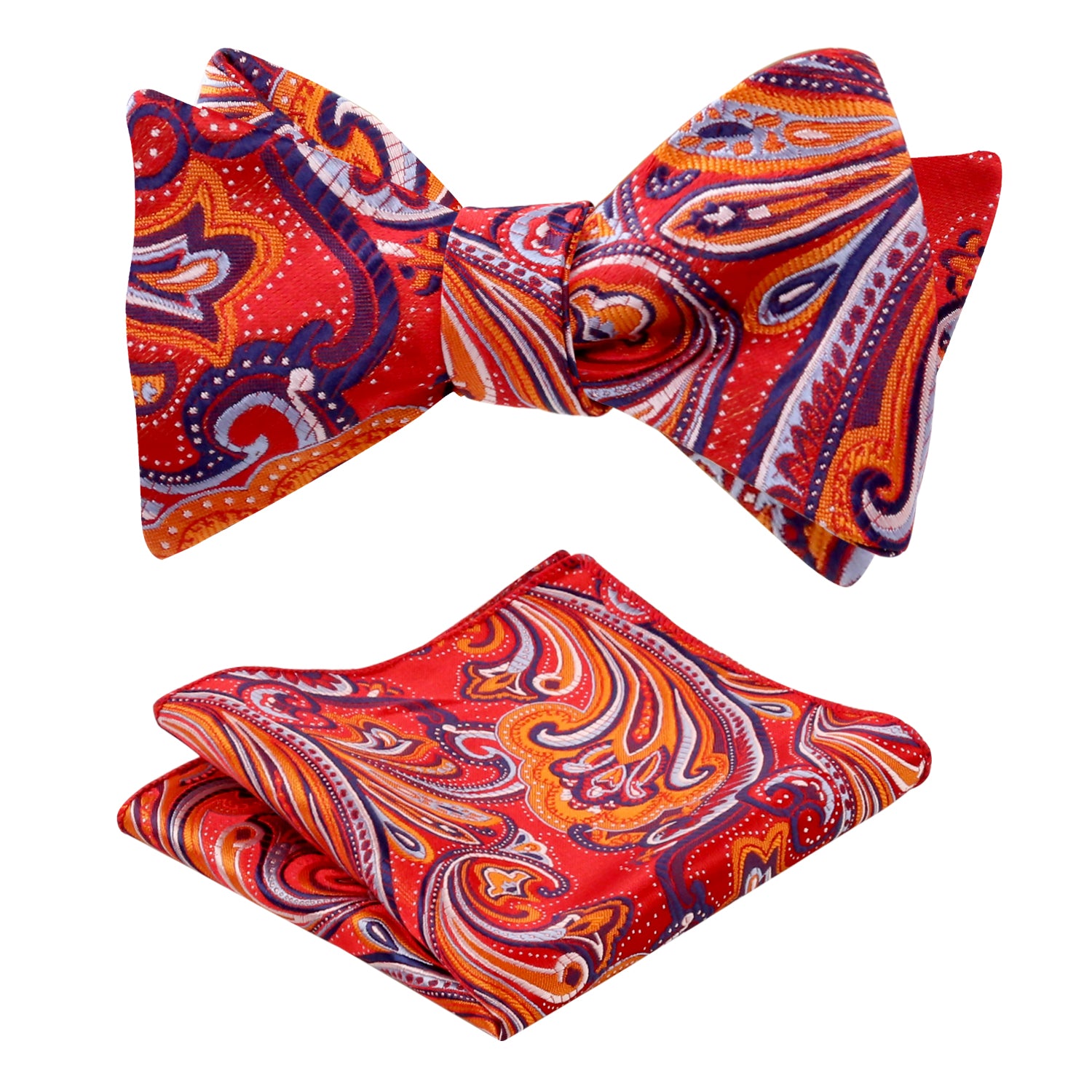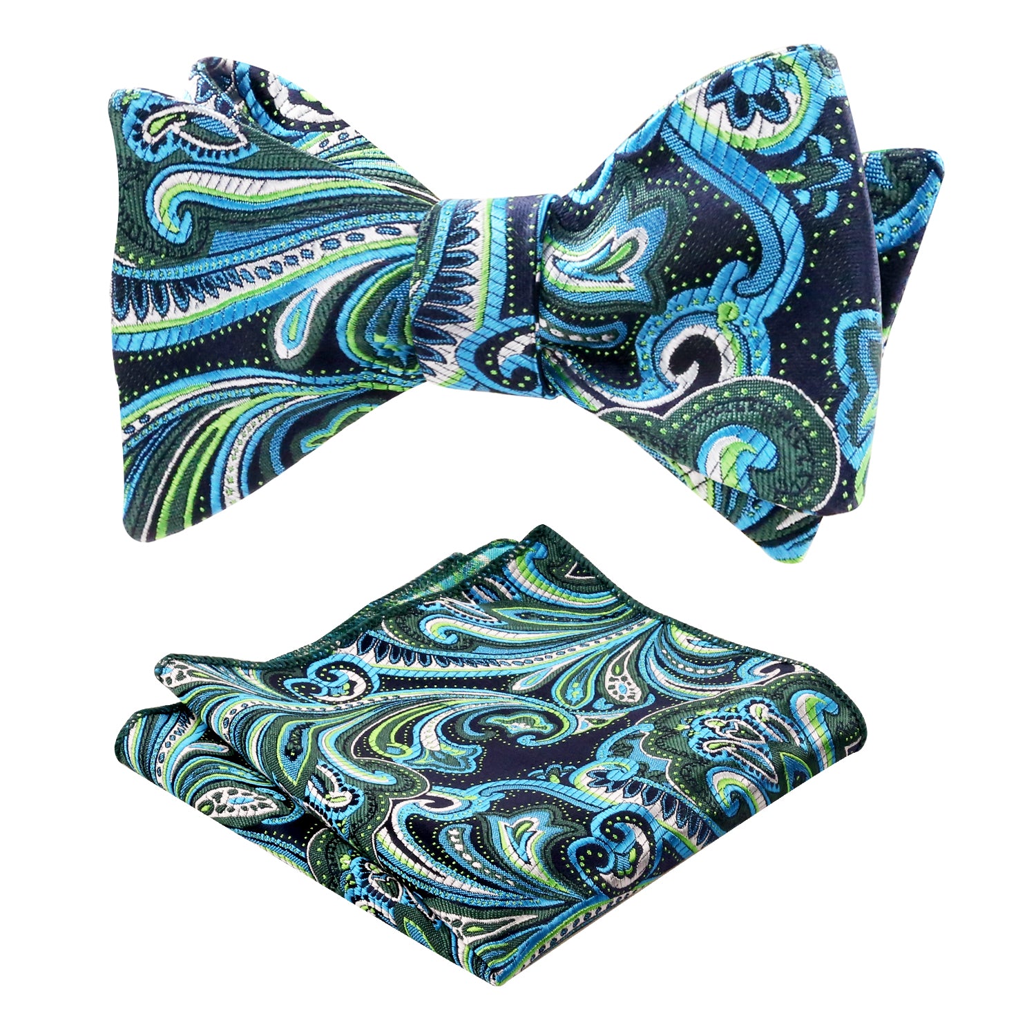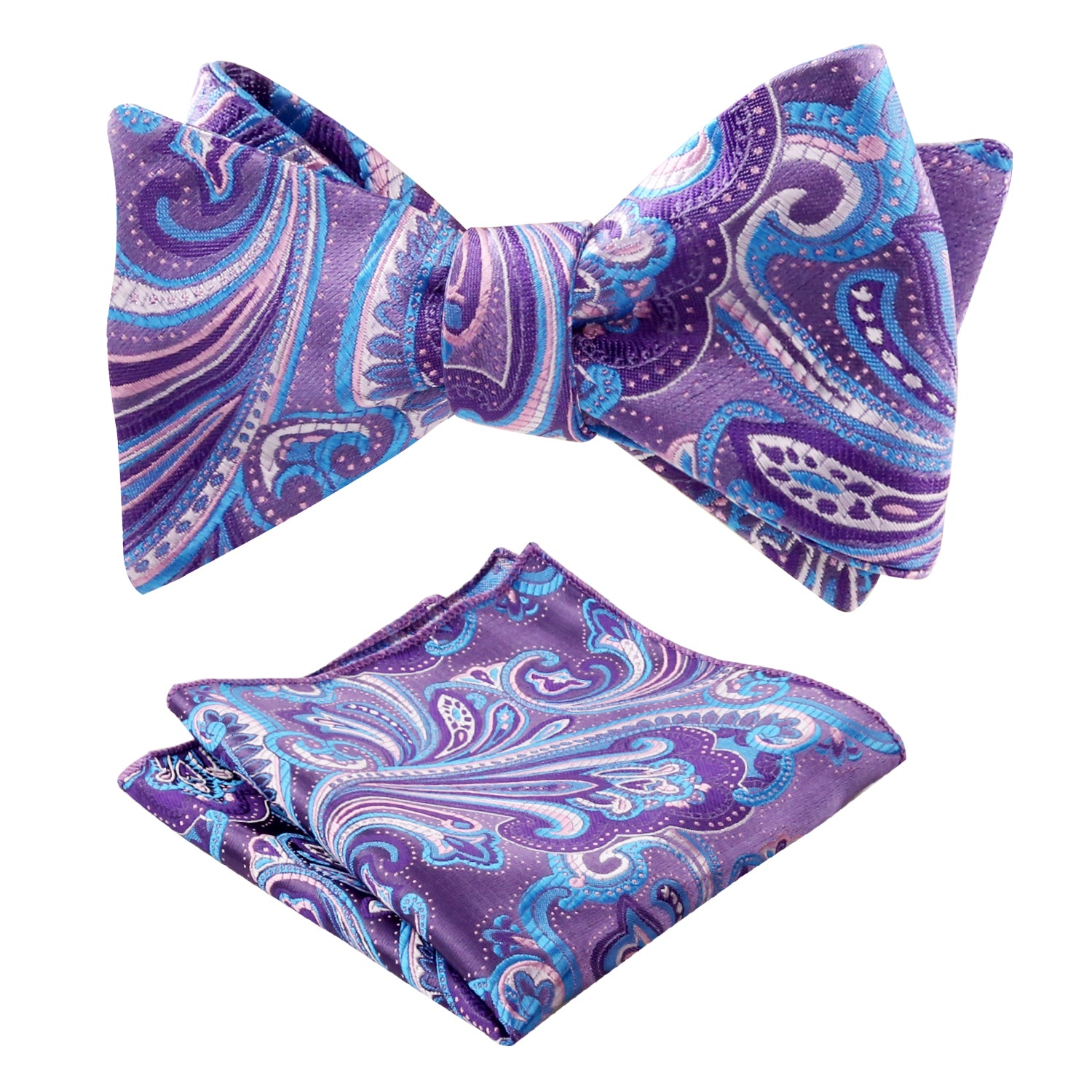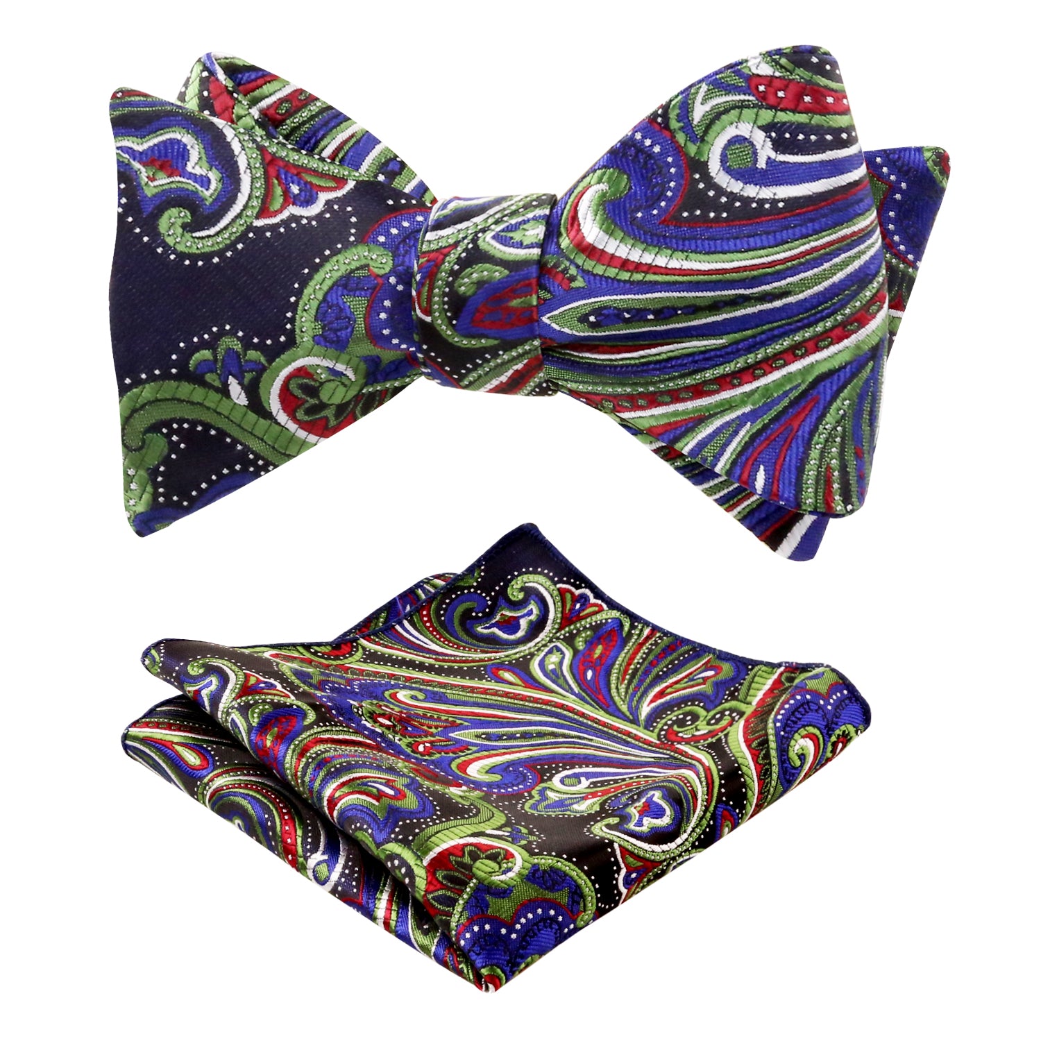 Men's Self-tied Paisley Bow Tie and Pocket Square Set, 167