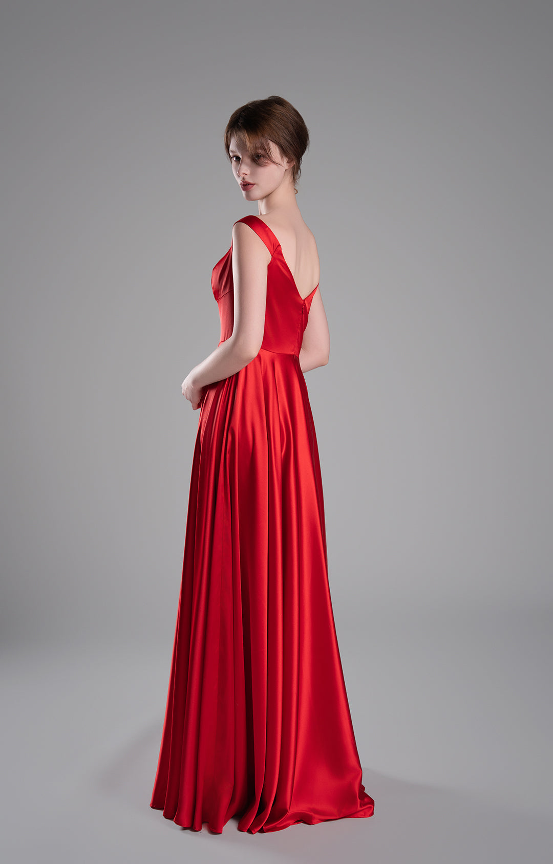 This red gown is perfect for a wide range of formal occasions, including evening galas, weddings, cocktail parties, or any special event.