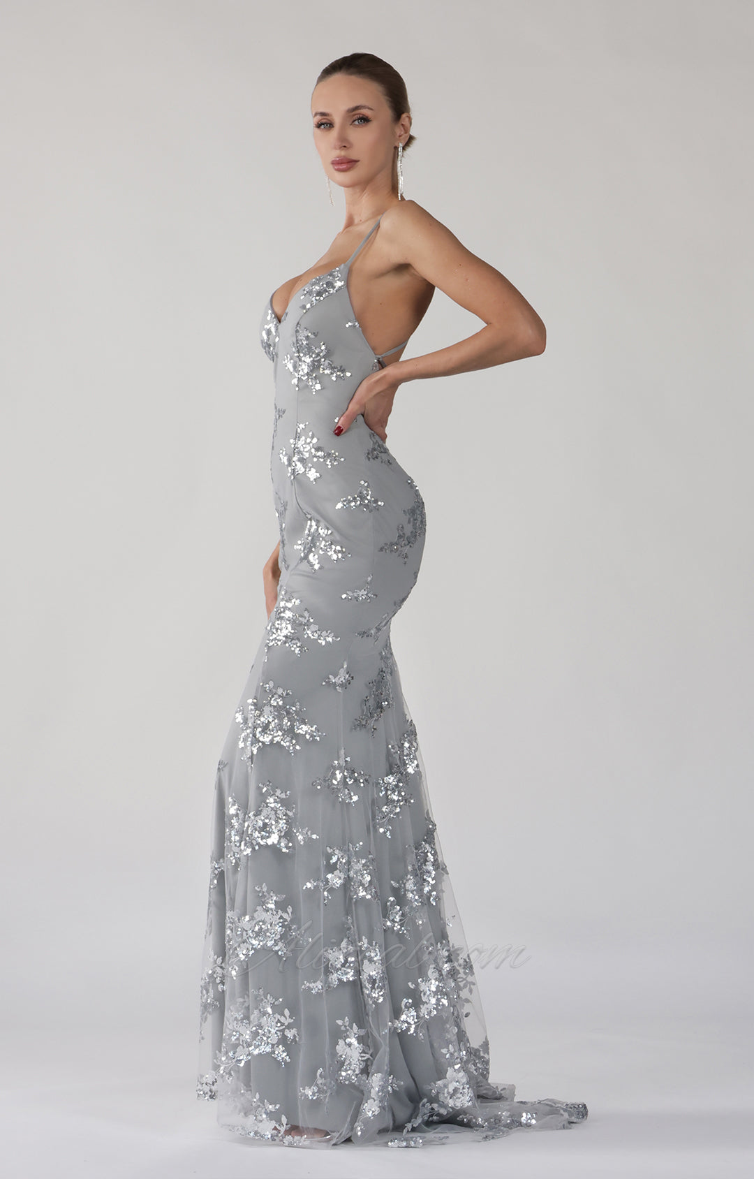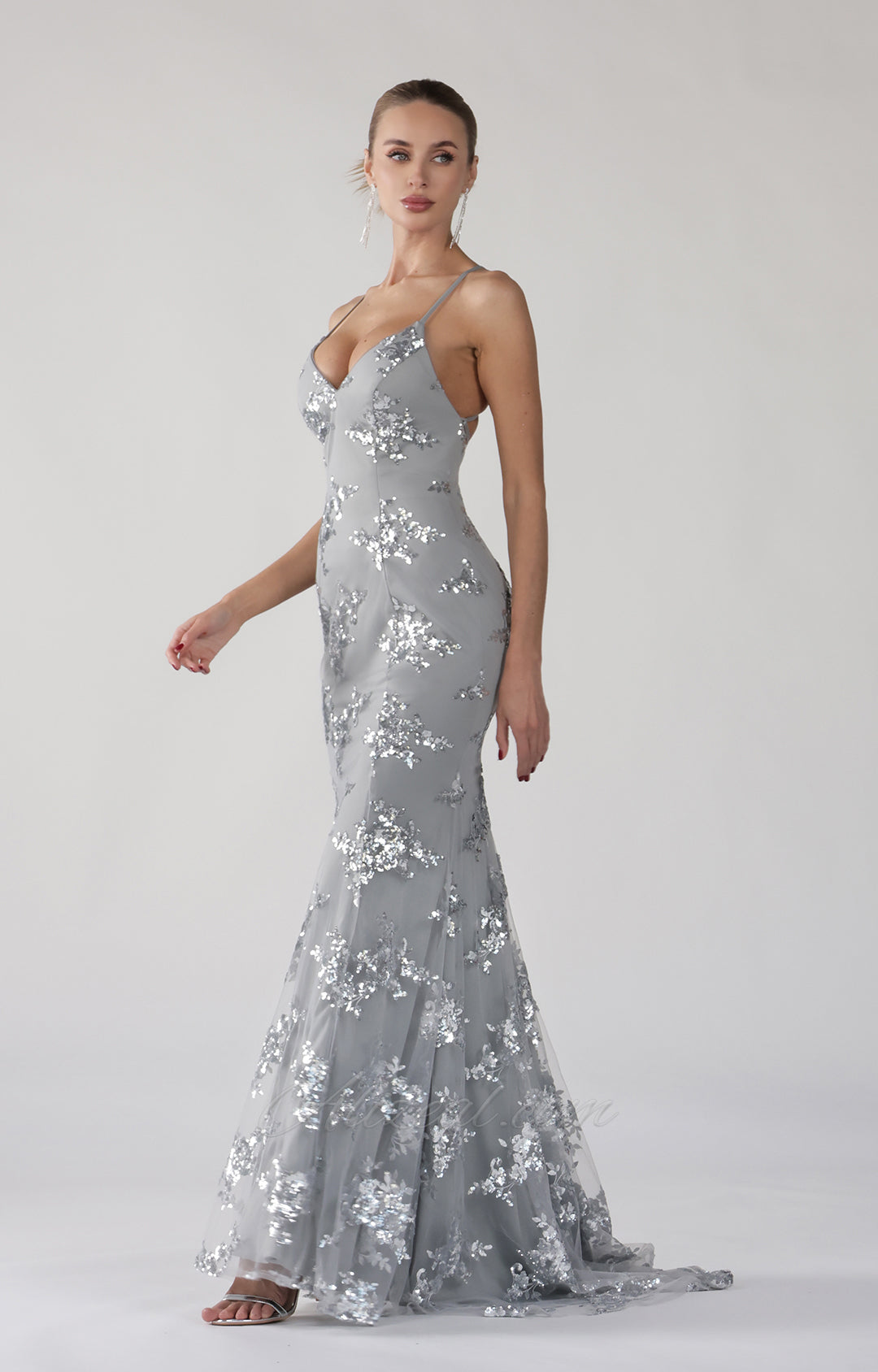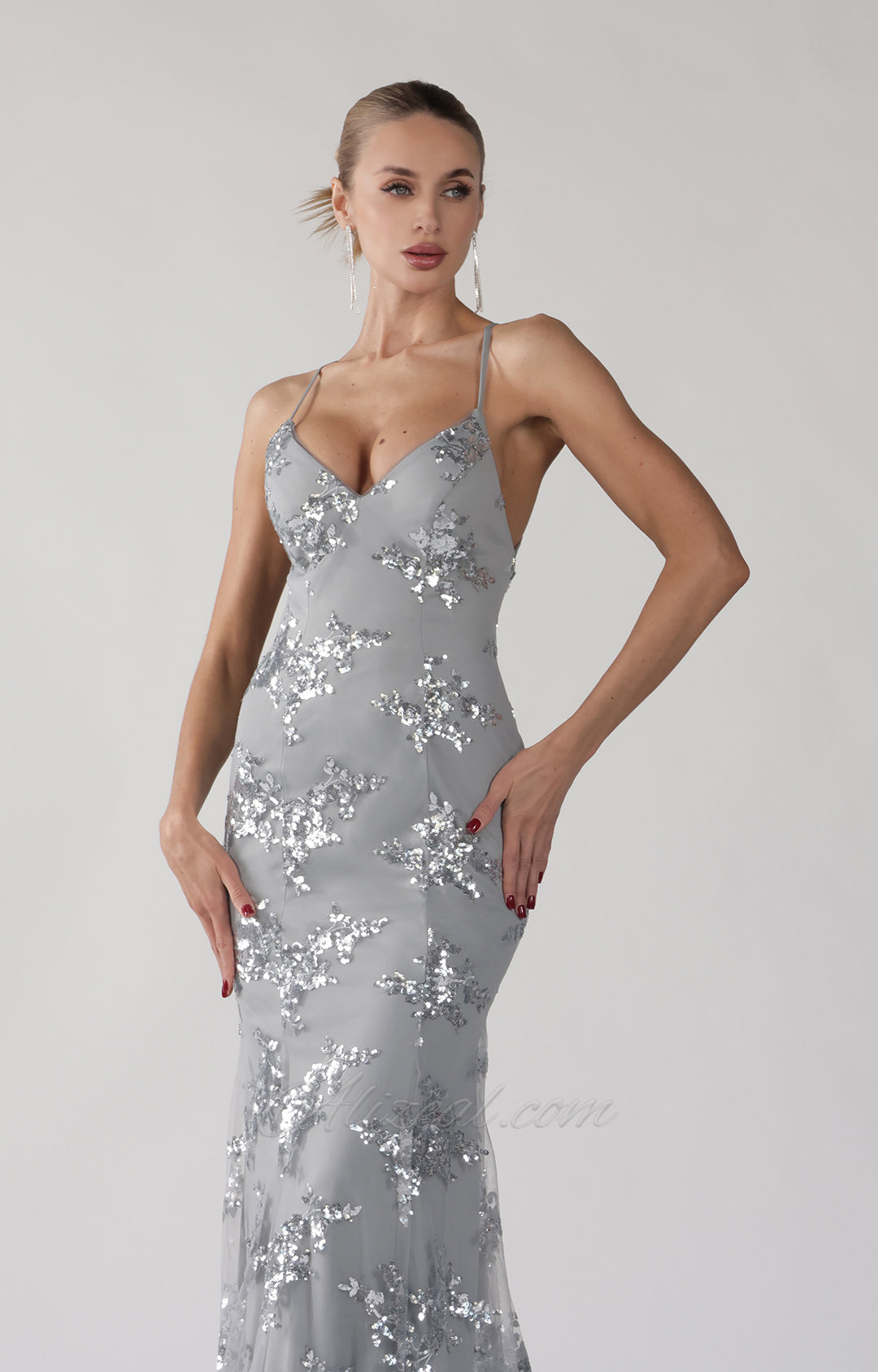 V-Neck Lace-Up Sequins Small Tailing Mermaid Maxi Dress