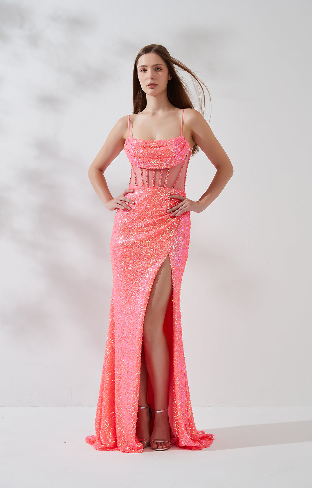 Sequins Spaghetti Straps Side Split Lace-up Dresses