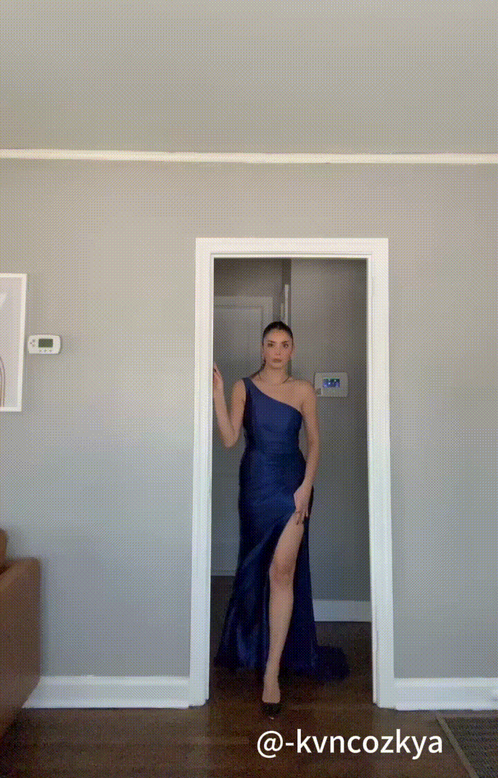 Satin One-shoulder Pleated Split Sweep Train Evening Dress