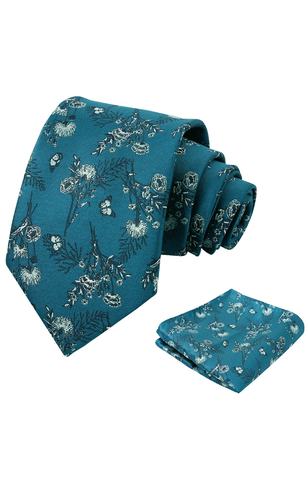 3.15'' Flower Ties for Men Handkerchief Set Wedding Retro Necktie Set-907