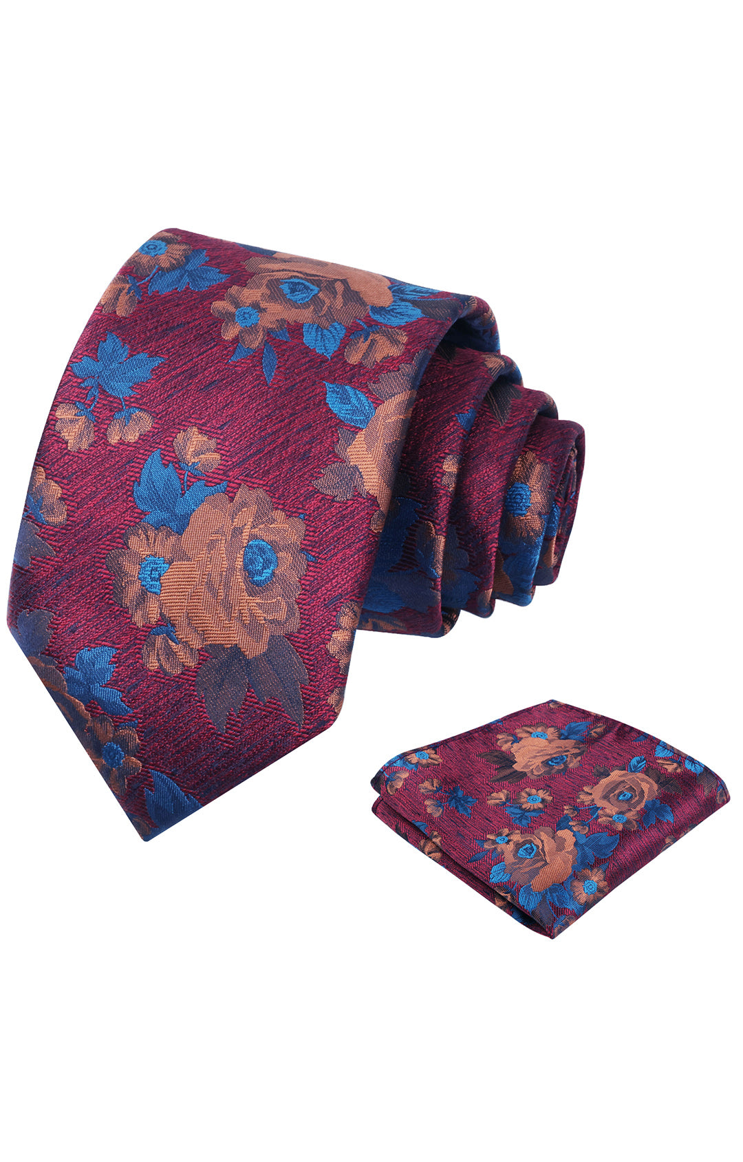 3.15'' Mens Tie Elegant Floral Pattern with Pocket Square Set-909