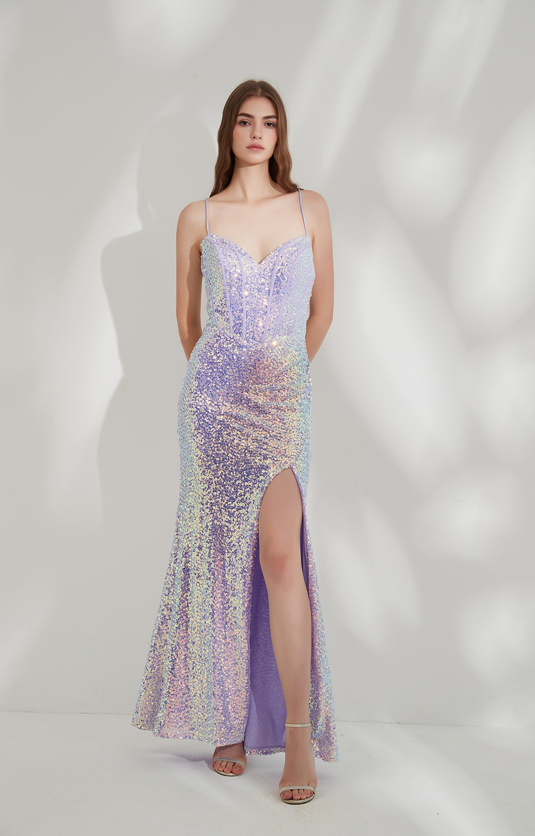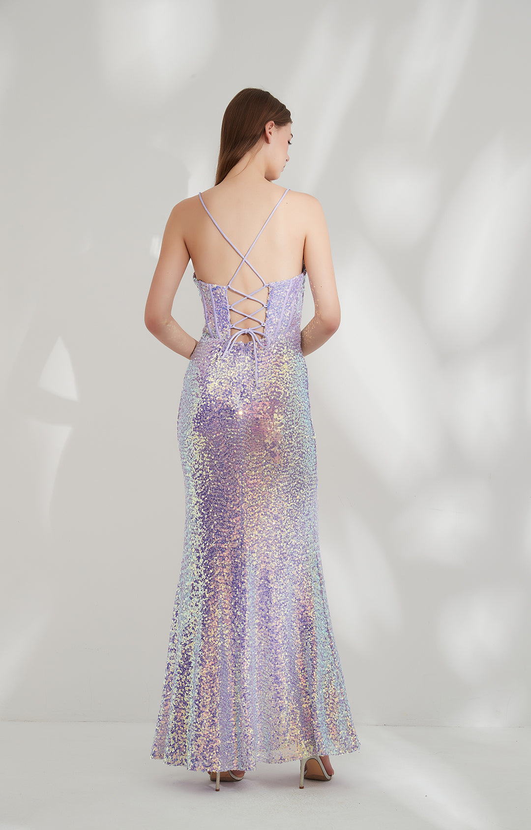 Adjustable Spaghetti Straps V-Neck Party Dress With High Side Slit