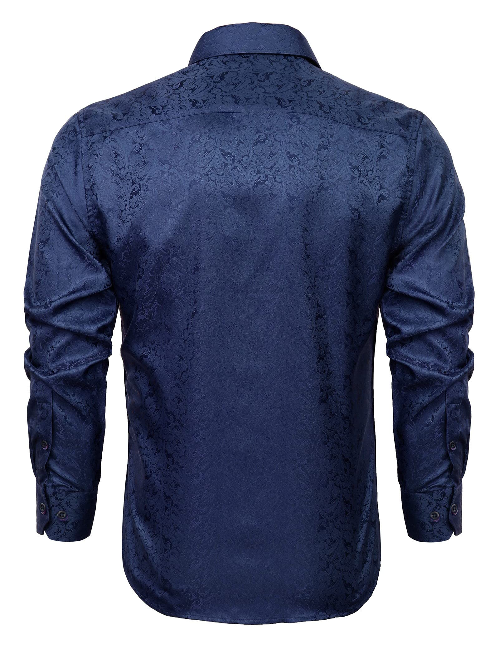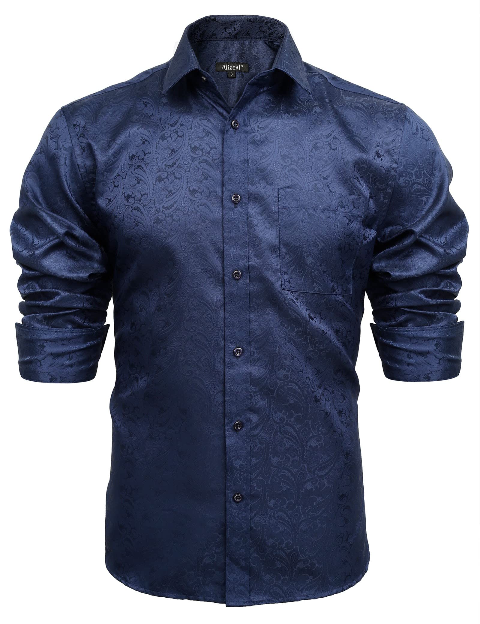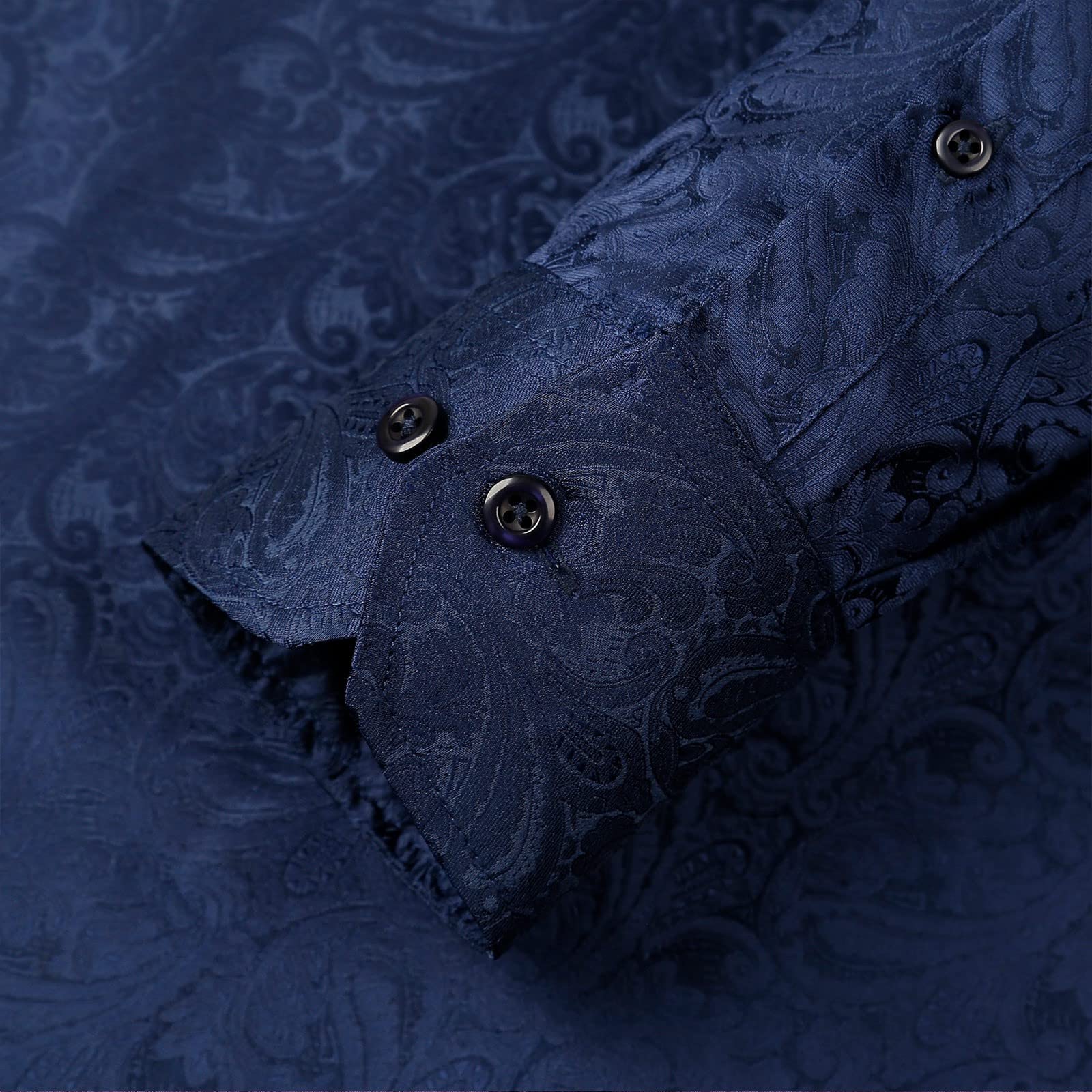Men's Paisley Jacquard Dress Shirt Classic Slim Fit Button-Down Long Sleeve Shirt, 113-Dark Navy